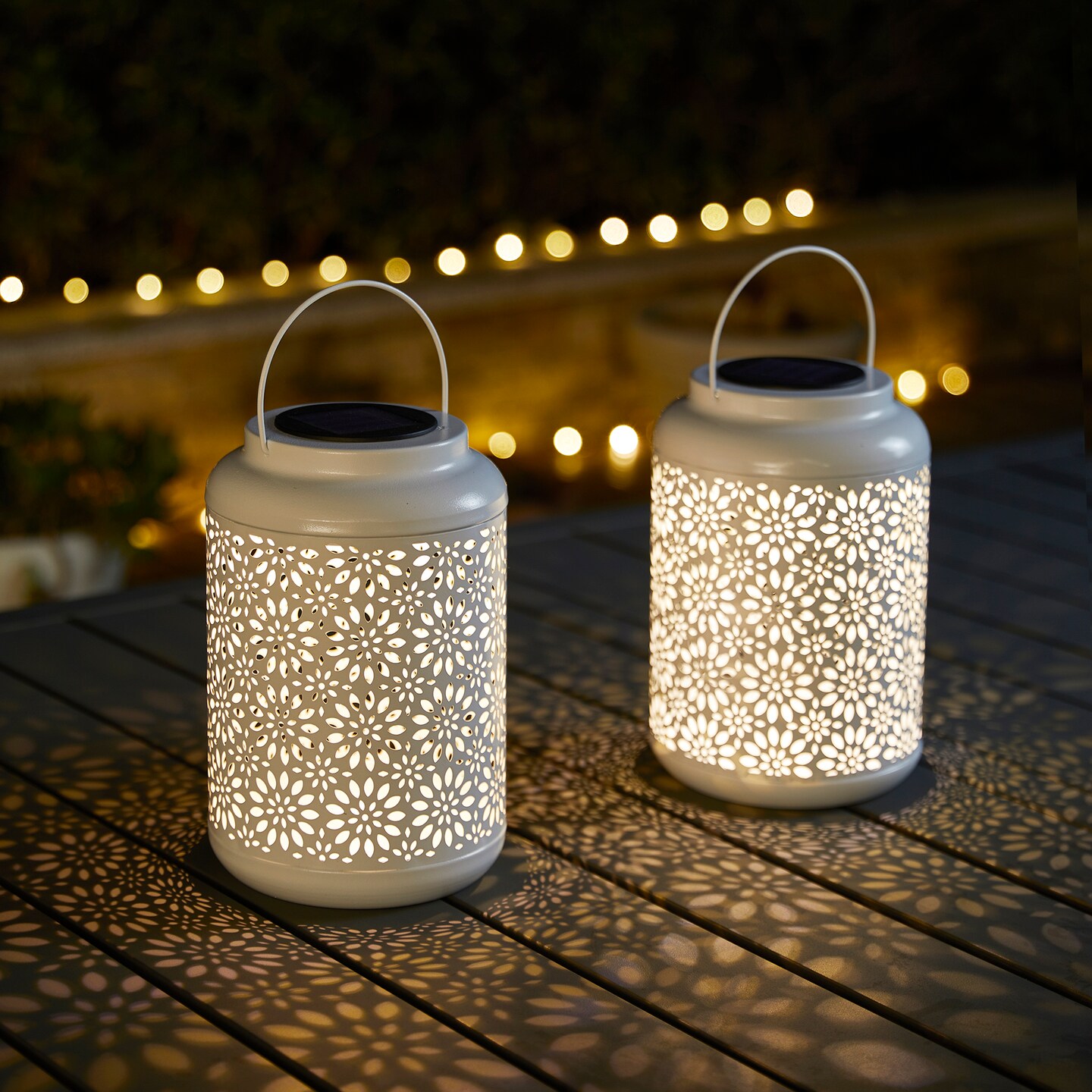 Set of 2/4 8.75"H Metal Cutout Flower Solar Powered Outdoor Hanging Lantern with LED Light