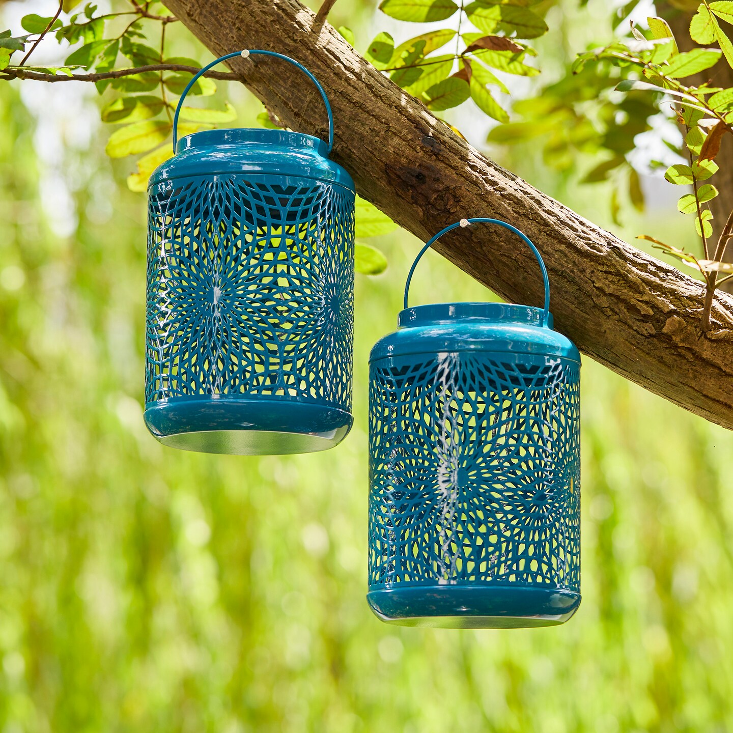 Set of 2/4 8.75"H Metal Cutout Scrollwork Solar Powered LED Outdoor Lantern with handle