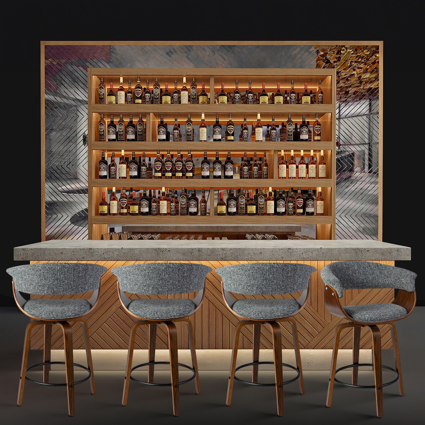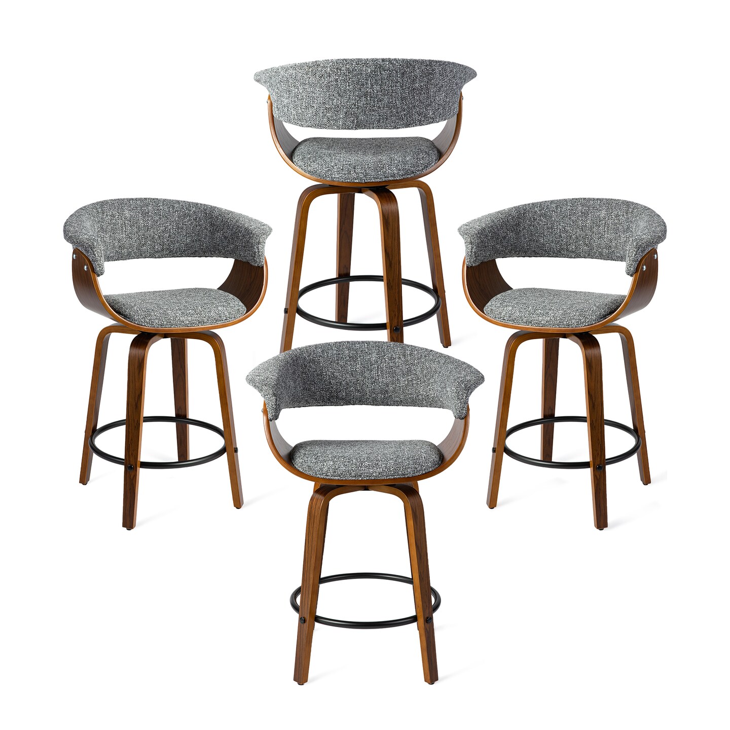 Set of 2/4 Modern Counter & Bar Height Wooden Swivel Bar Stools