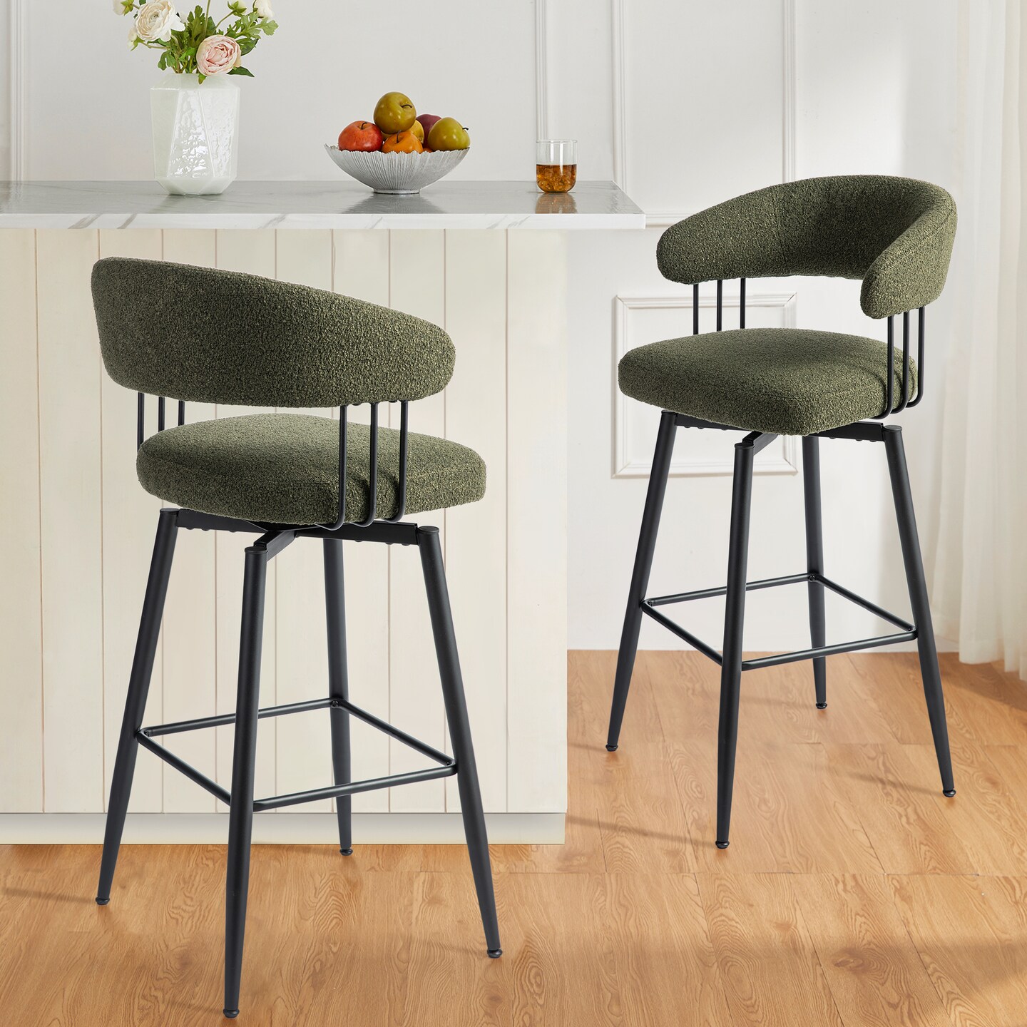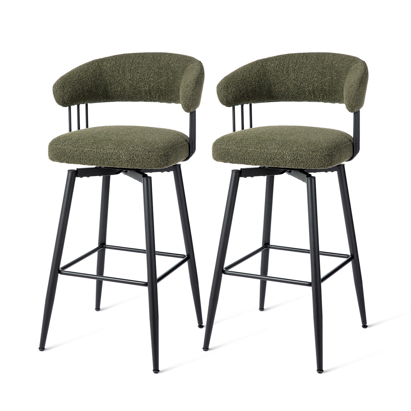 Set of 2/4 Modern Fabric/Leatherette Swivel Bar Stool with Tapered Black Metal Legs