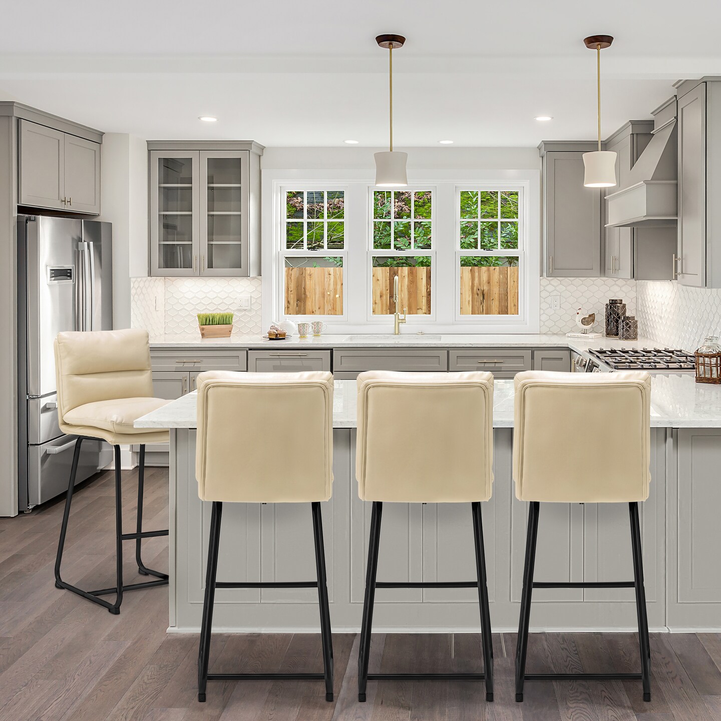 Set of 2/4 Modern Thick Leatherette Bar Stool with Metal Legs