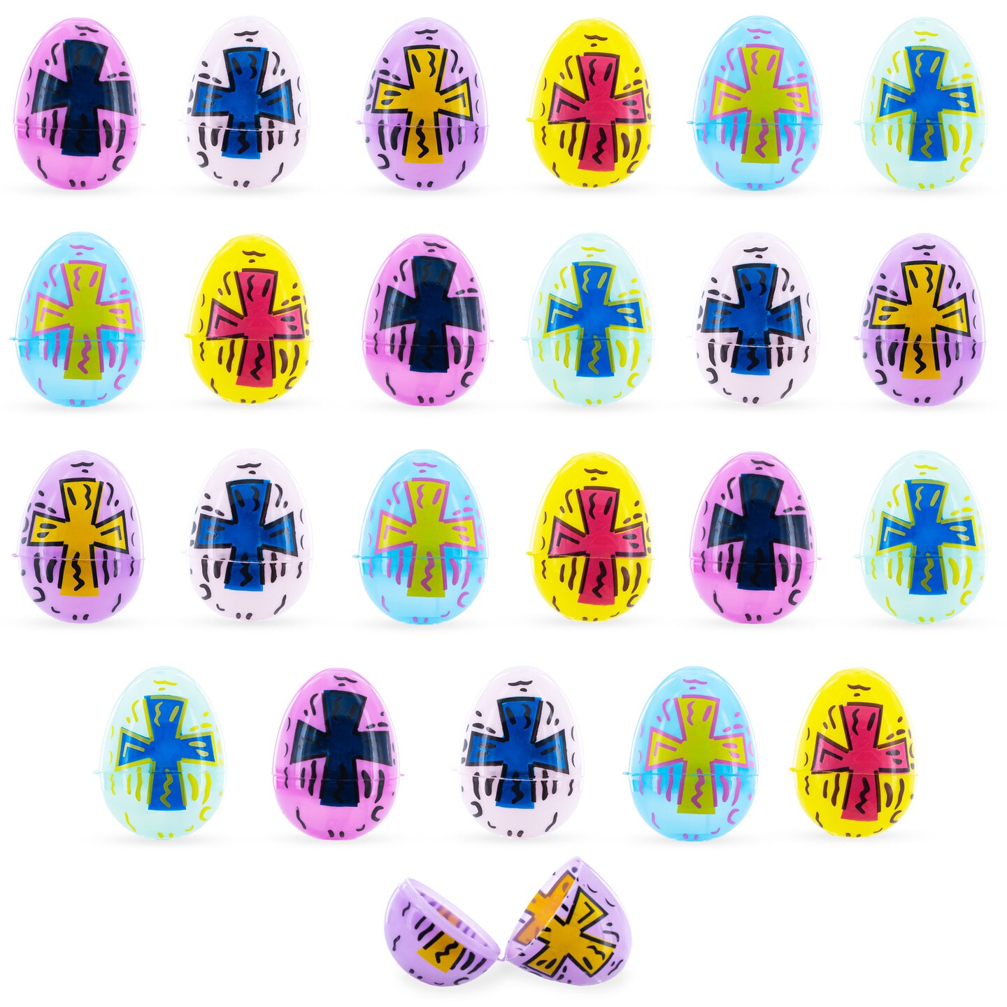 Set of 24 Pastel Cross Religious Plastic Easter Eggs