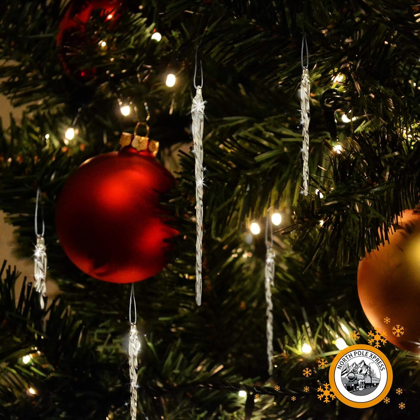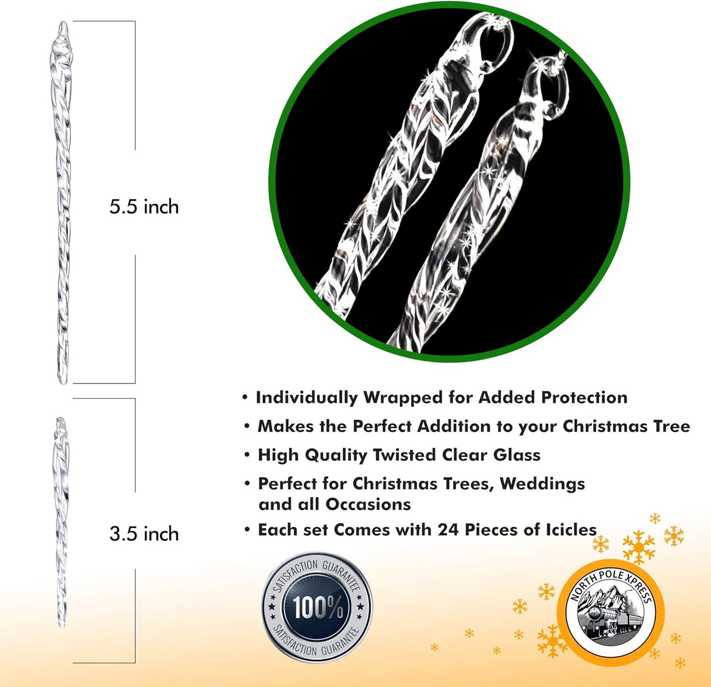 Set of 24 Twisted Clear Glass Icicle Christmas Ornaments