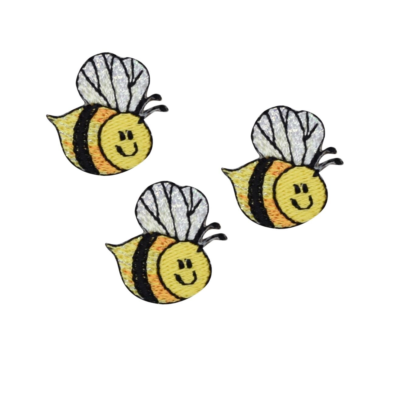 Set of 3, 1 inch - Bumble Bee Smiling Face, Embroidered, Iron on Patch