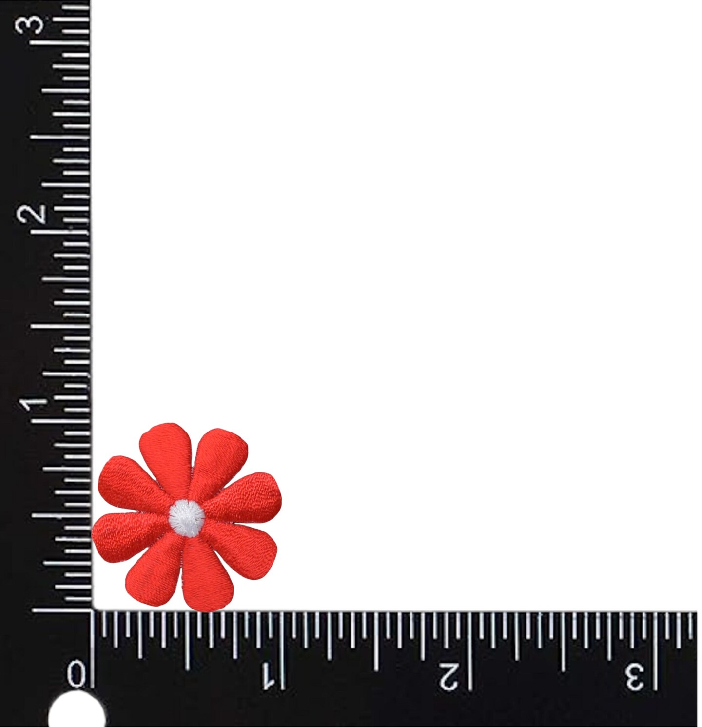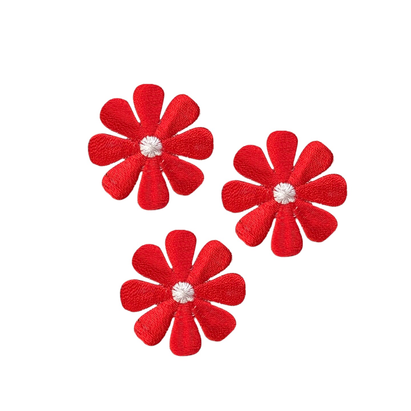 Set of 3, 1" Red Daisy, Flowers, Embroidered, Iron on Patch