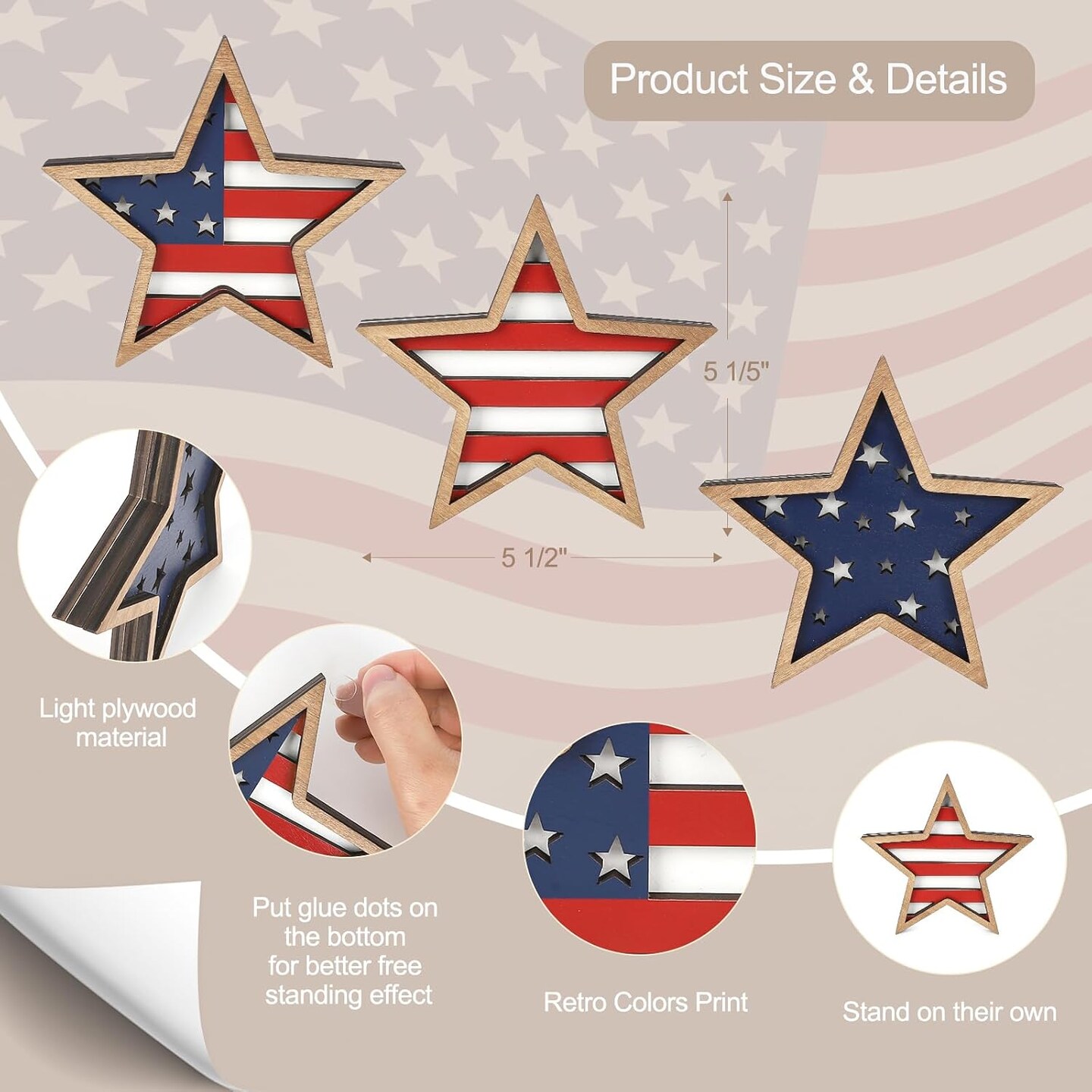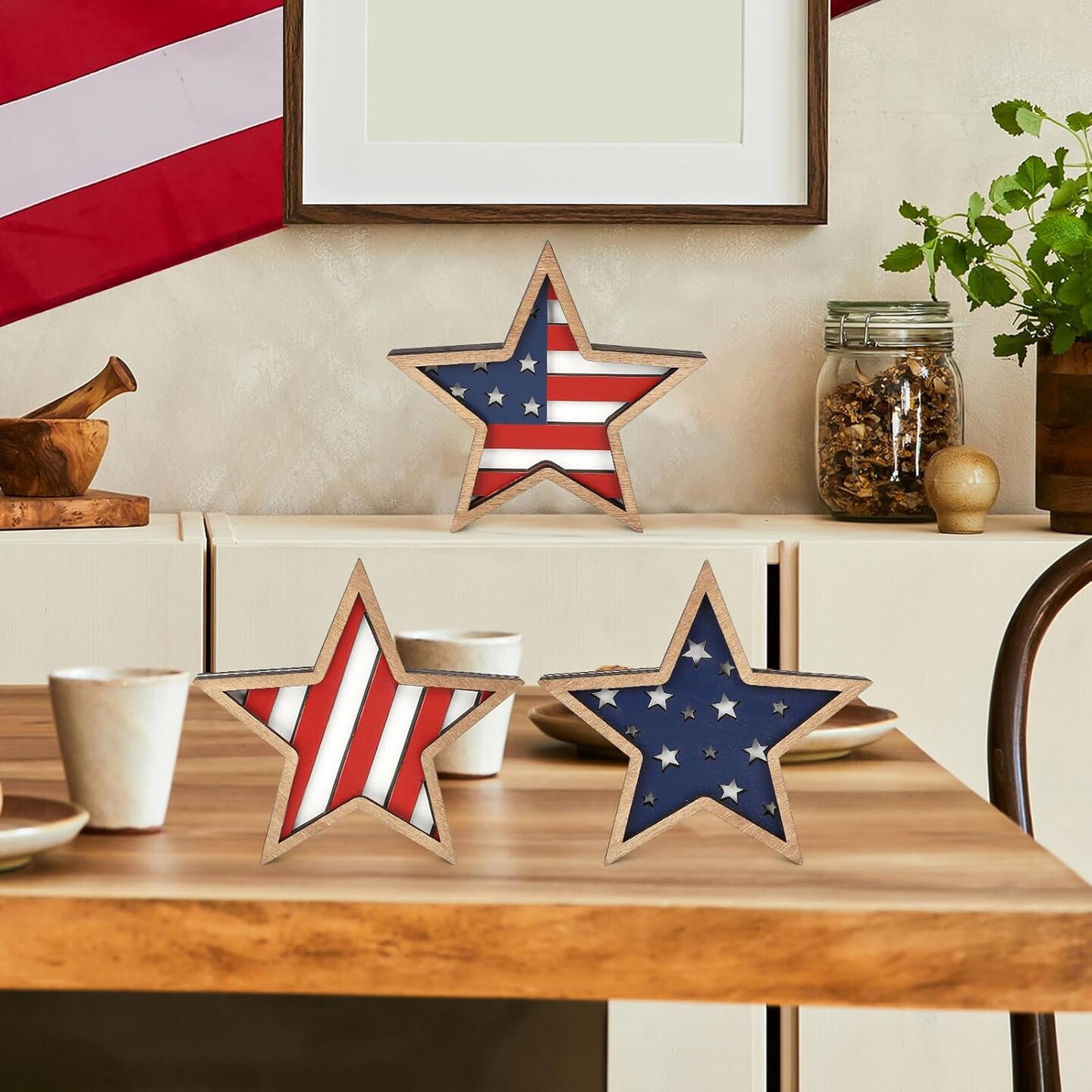 Set of 3 - 4th of July Decorations Wooden Stars (Red White Blue)