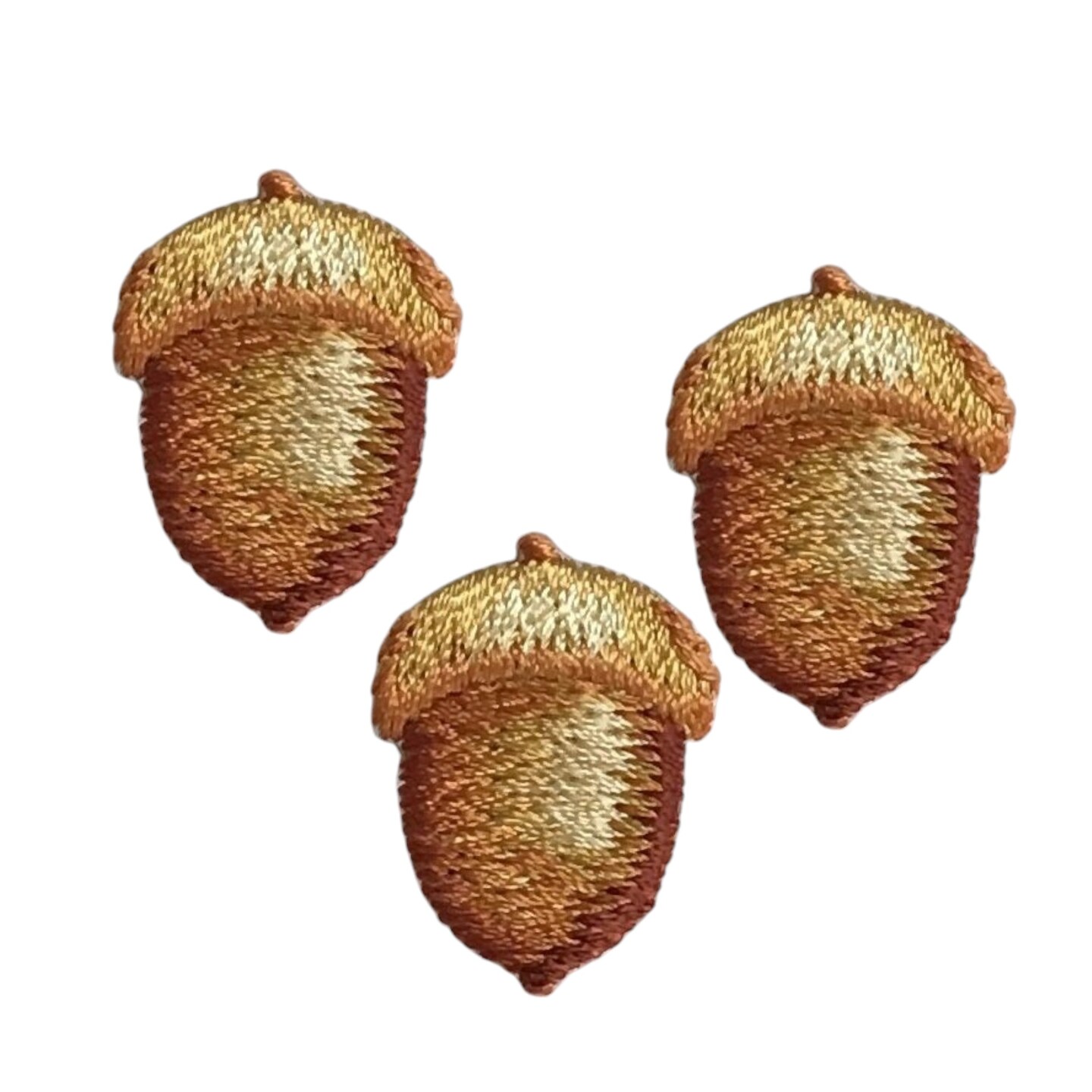 (Set of 3) Acorn, Oak Tree Nut, Embroidered, Iron on Patch