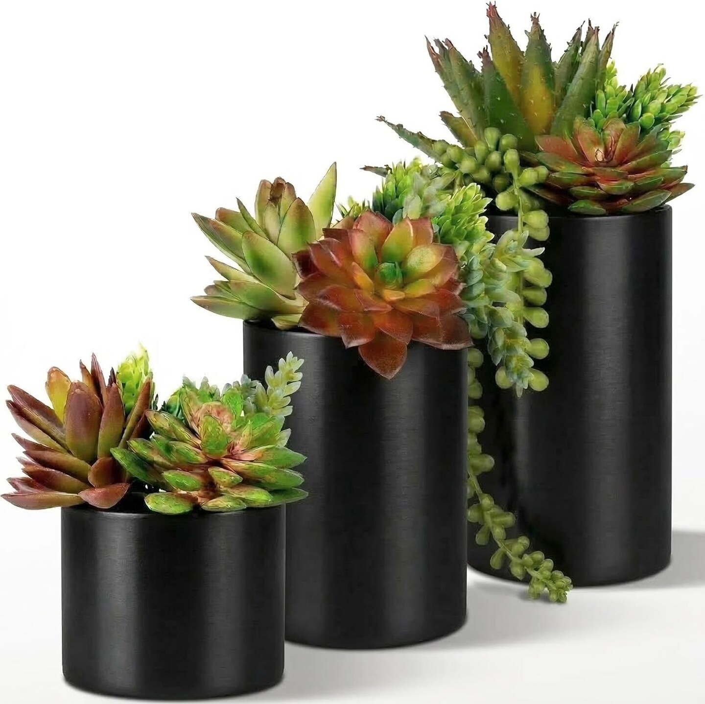 Set of 3 Artificial Succulent Plants in Premium Ceramic Pots – Realistic Faux Greenery for Home, Bathroom, Kitchen, Office Desk & Modern Room Decor
