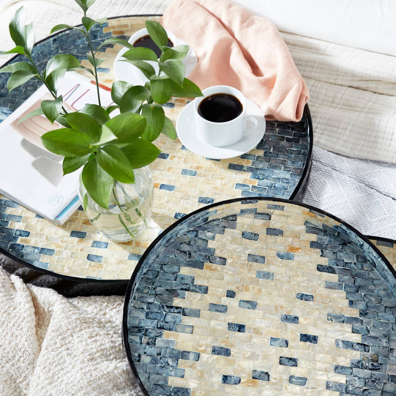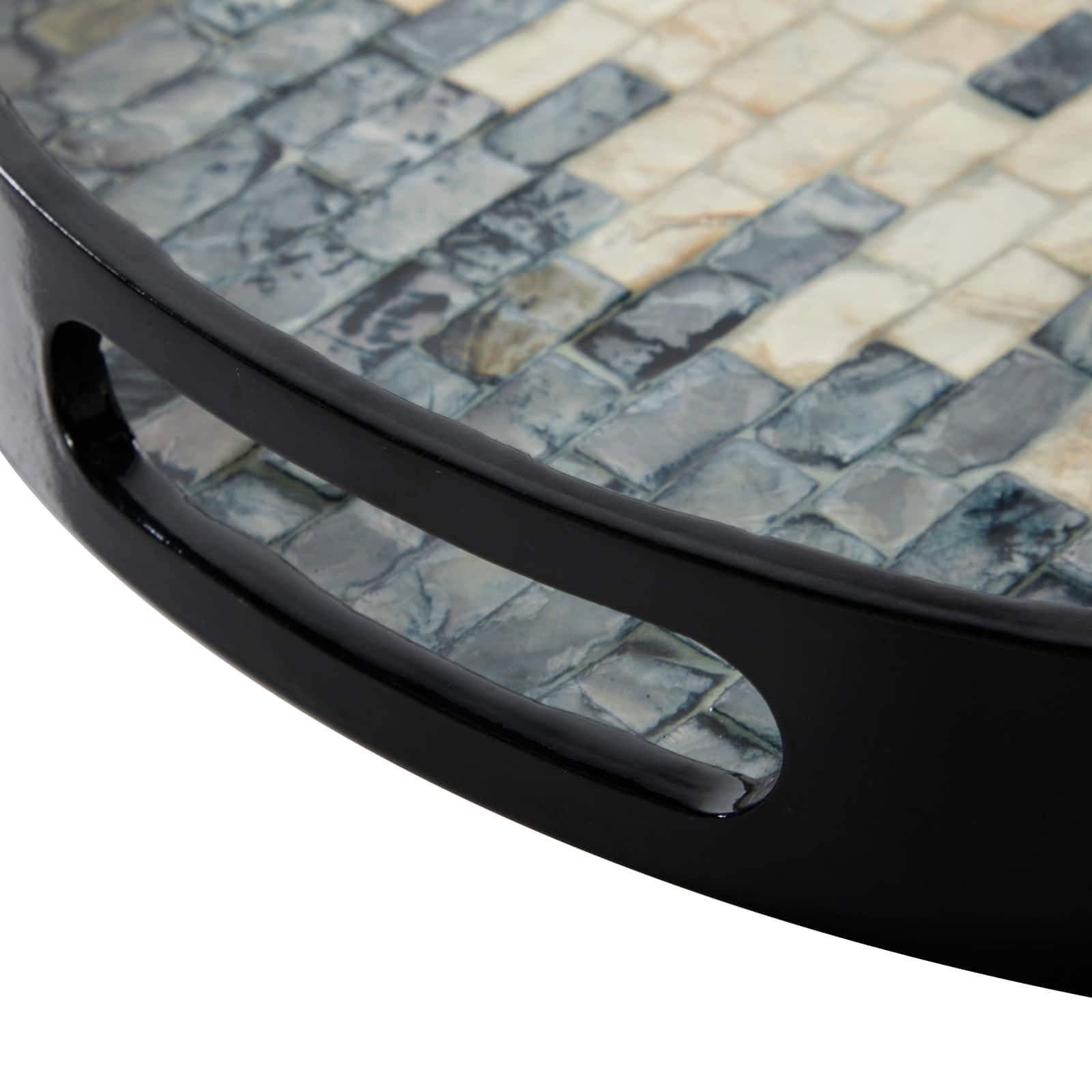 Set of 3" Black Mother of Pearl Coastal Tray, 24", 20", 16"