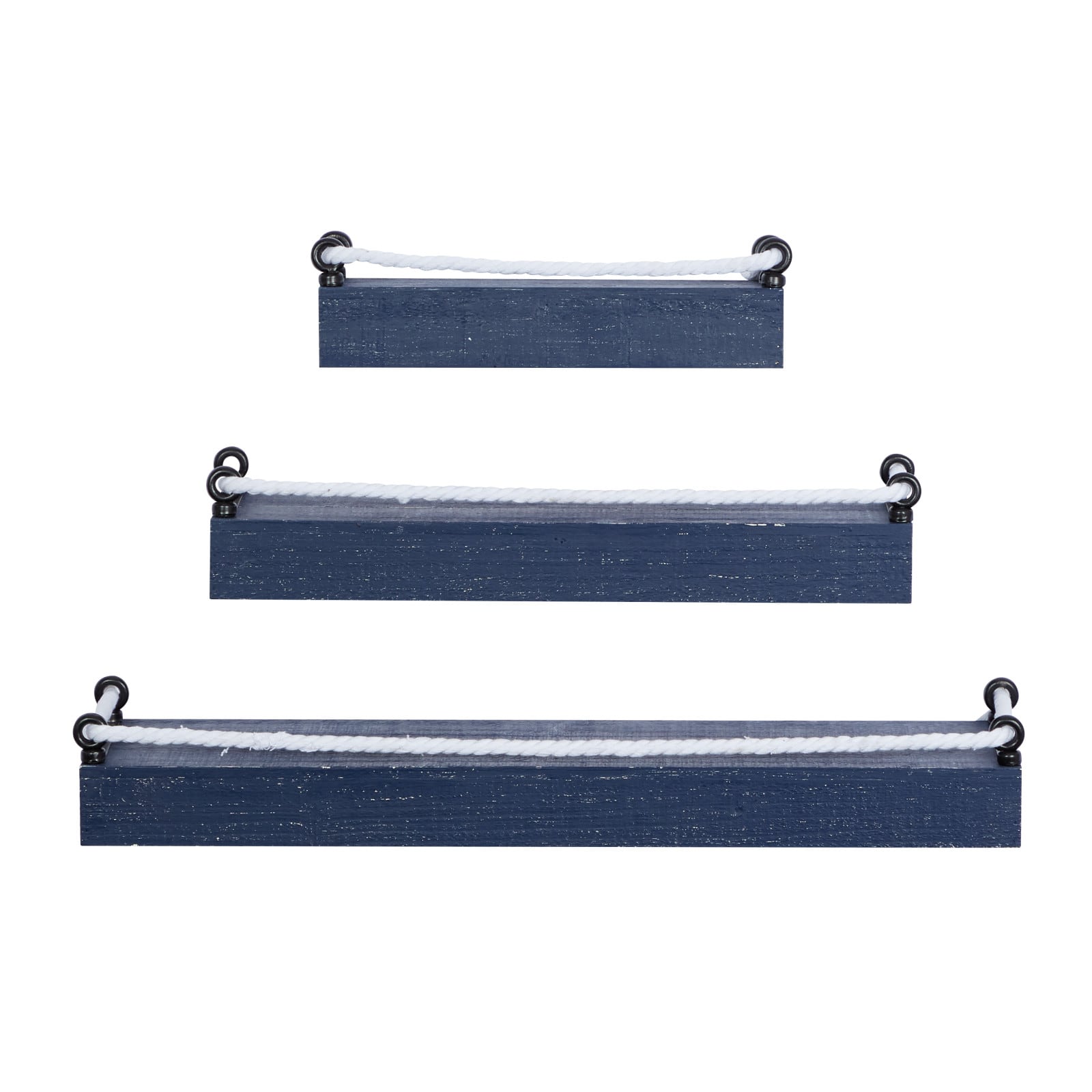 Set of 3 Blue Wood Contemporary Wall Shelves 32", 25", 17"