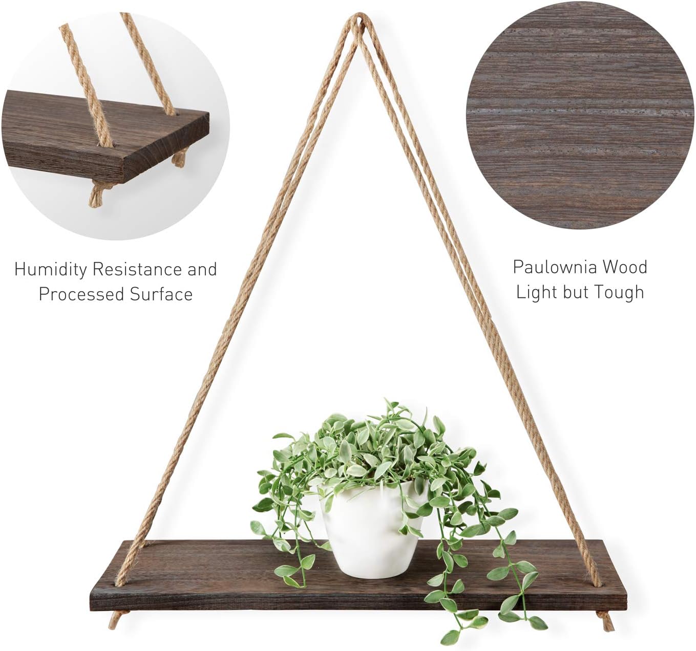 Set of 3 Boho Wood Hanging Shelves (Brown)