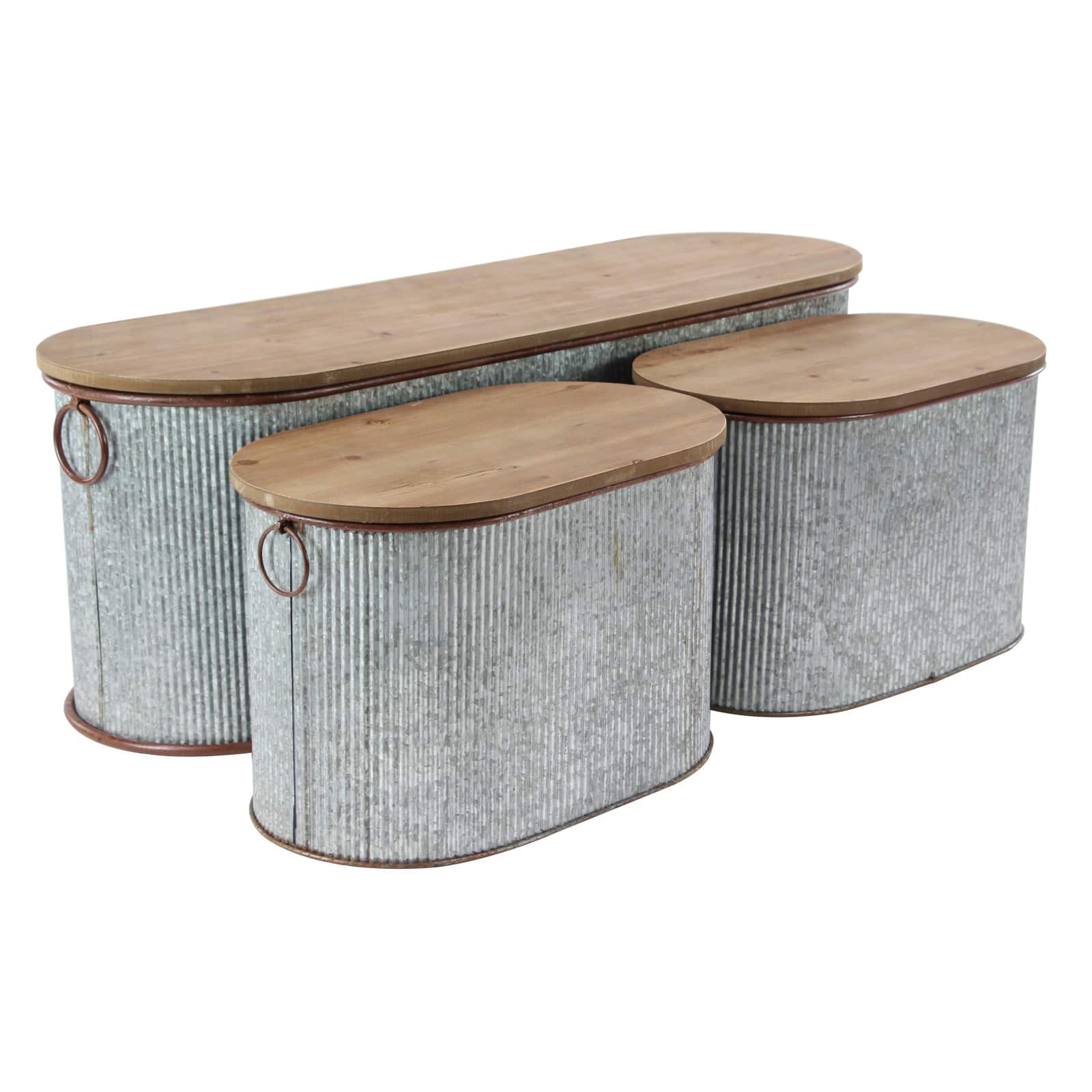Set of 3 Brown Metal Farmhouse Storage Bench, 23", 48"