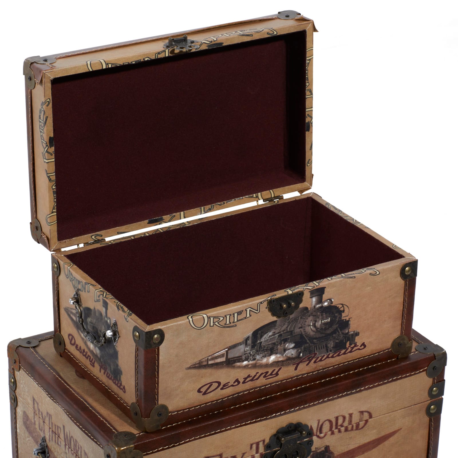 Set of 3" Brown Wood Vintage Trunk, 17", 15", 12"