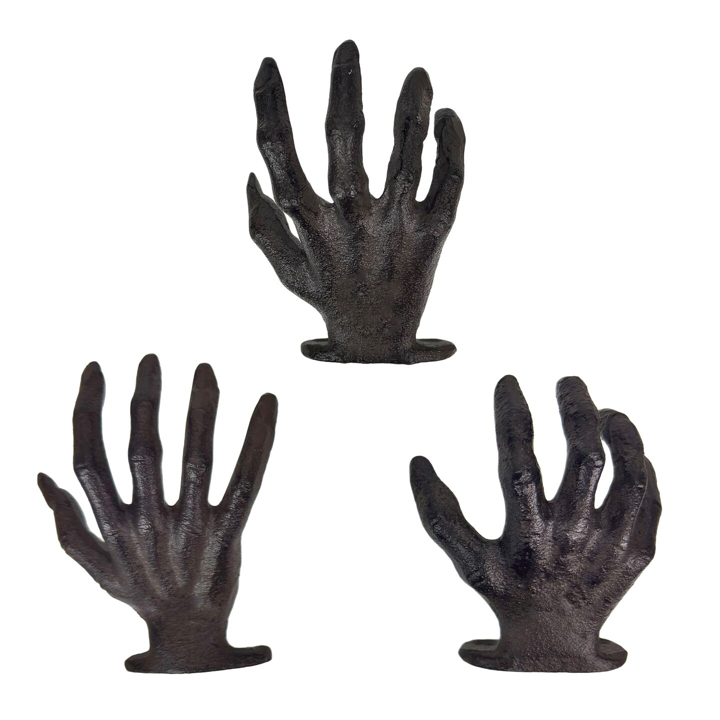 Set of 3 Cast Iron Creepy Hand Wall Hooks Gothic Horror Decor 3D Hands