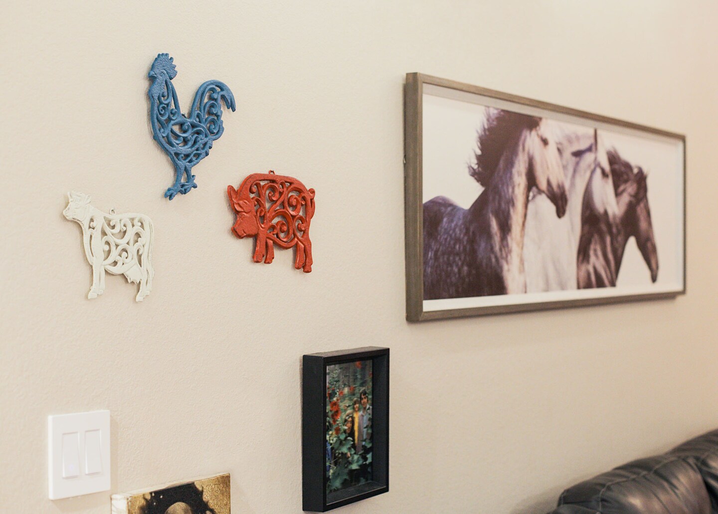 Set of 3 Cast Iron Farm Animal Kitchen Trivets Wall Hanging Art Rooster Cow Pig