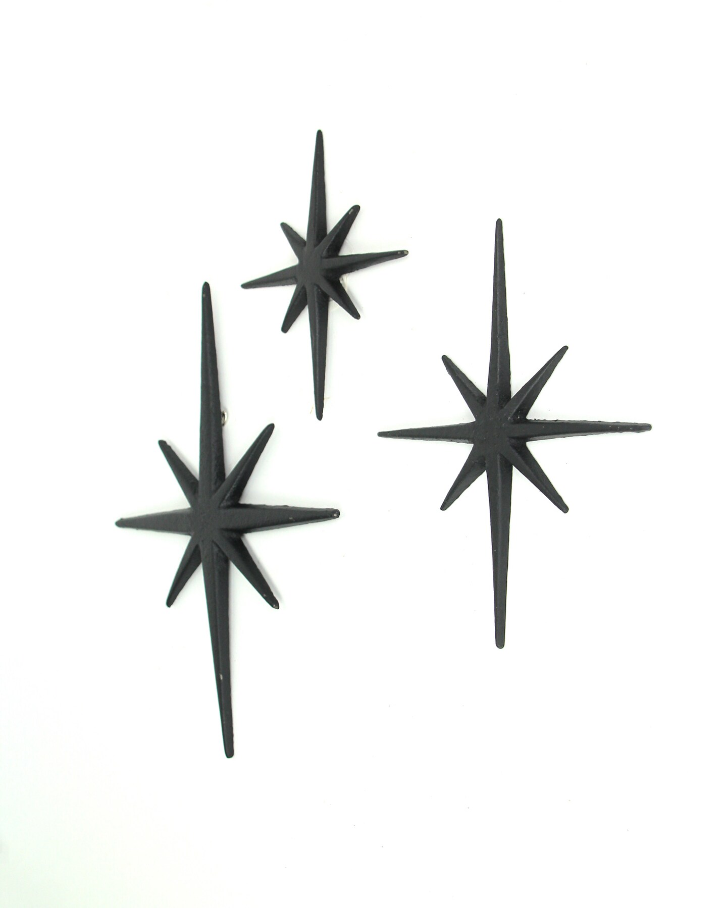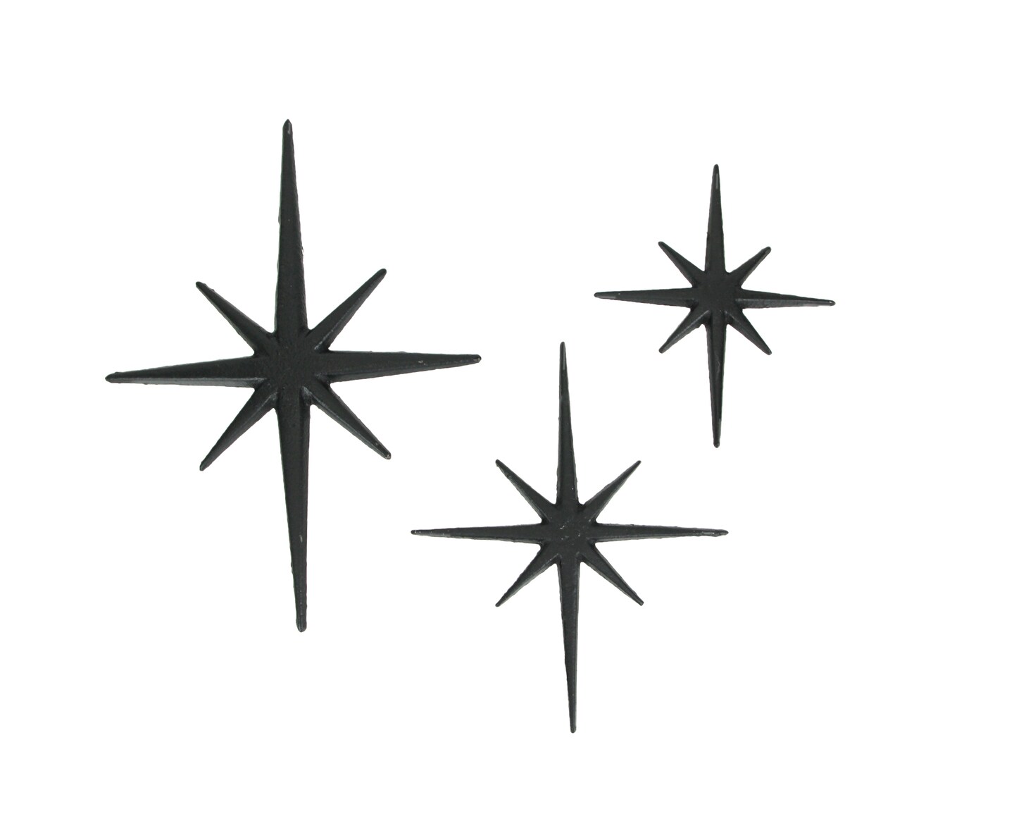Set of 3 Cast Iron Starburst Wall Hangings Mid Century Modern 8 Pointed Stars