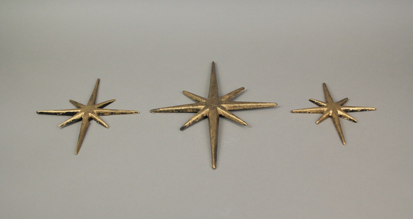 Set of 3 Cast Iron Starburst Wall Hangings Mid Century Modern 8 Pointed Stars