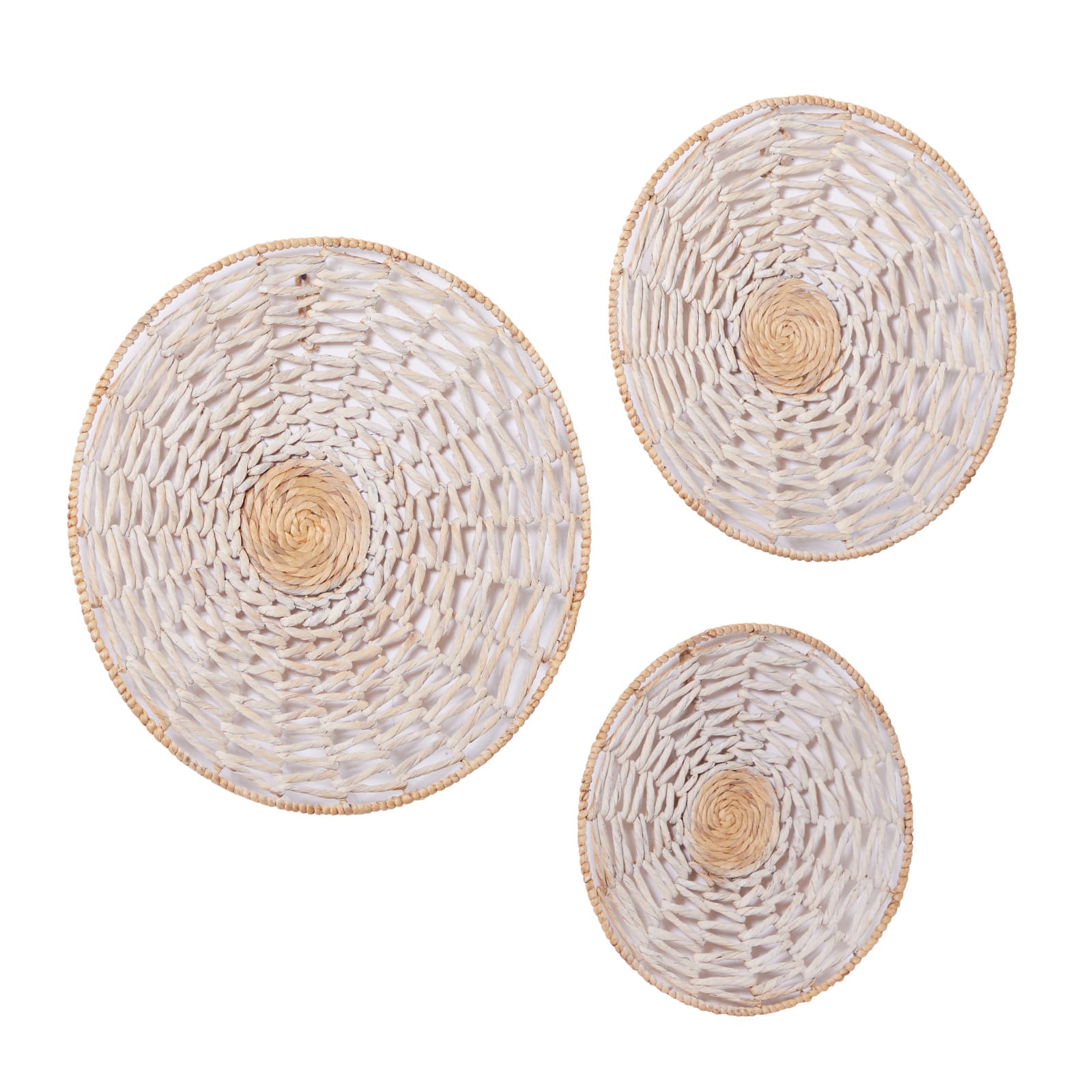 Set of 3 Cream Dried Plant Material Coastal Style Wall Decor, 20", 24", 28"