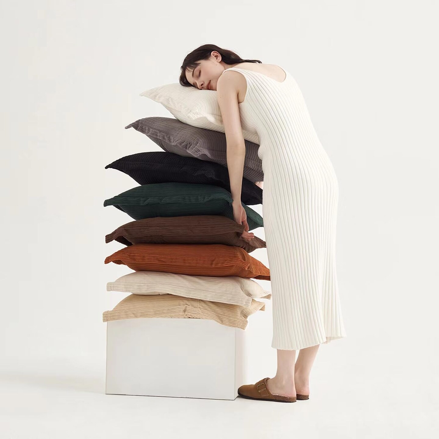 Set of 3 Decorative Vintage Throw Pillow Covers 18x18inch, Soft Striped Textured Corduroy Square Cushion Pillowcases for Modern Bedroom Living Room Farmhouse Decor(Camel, Beige & White)