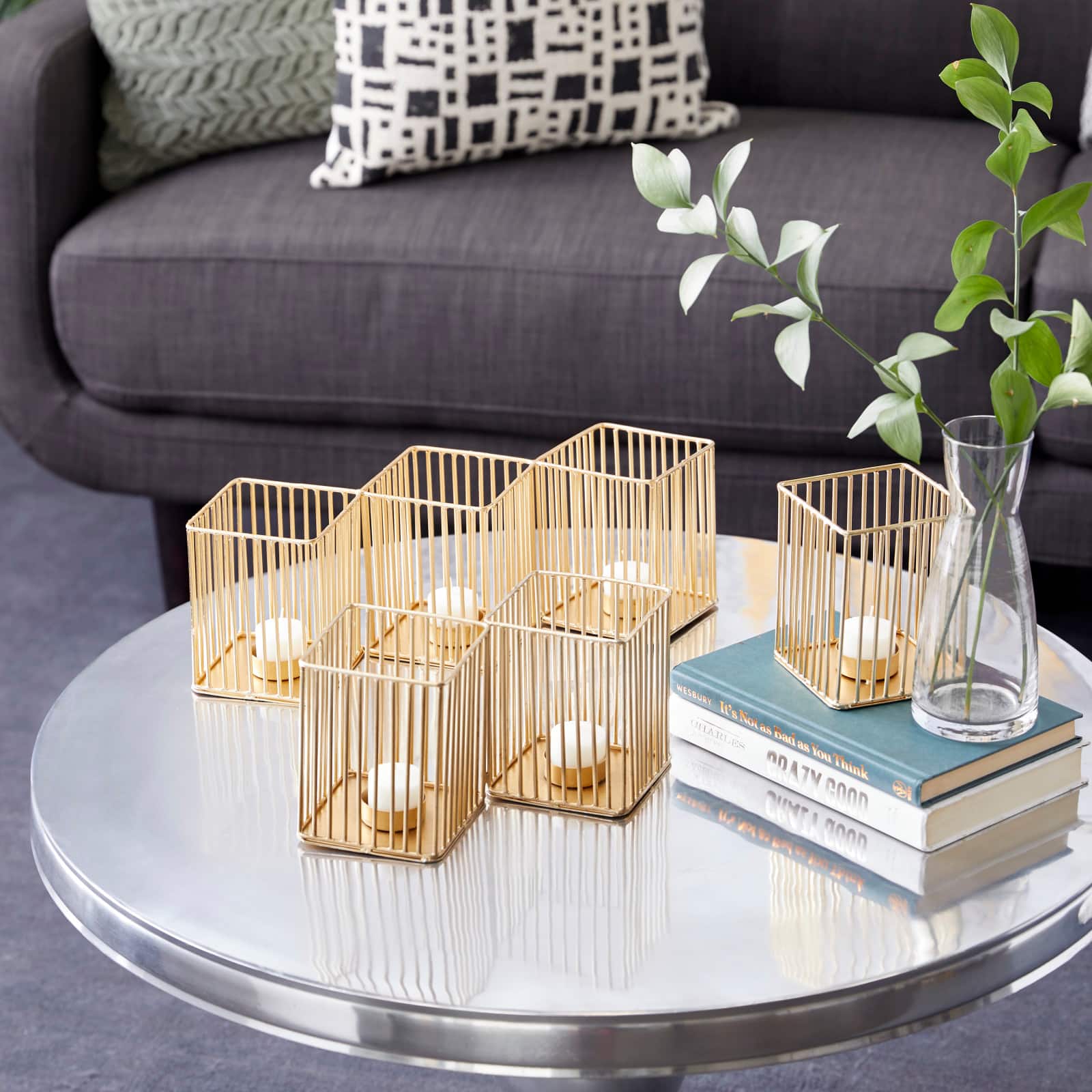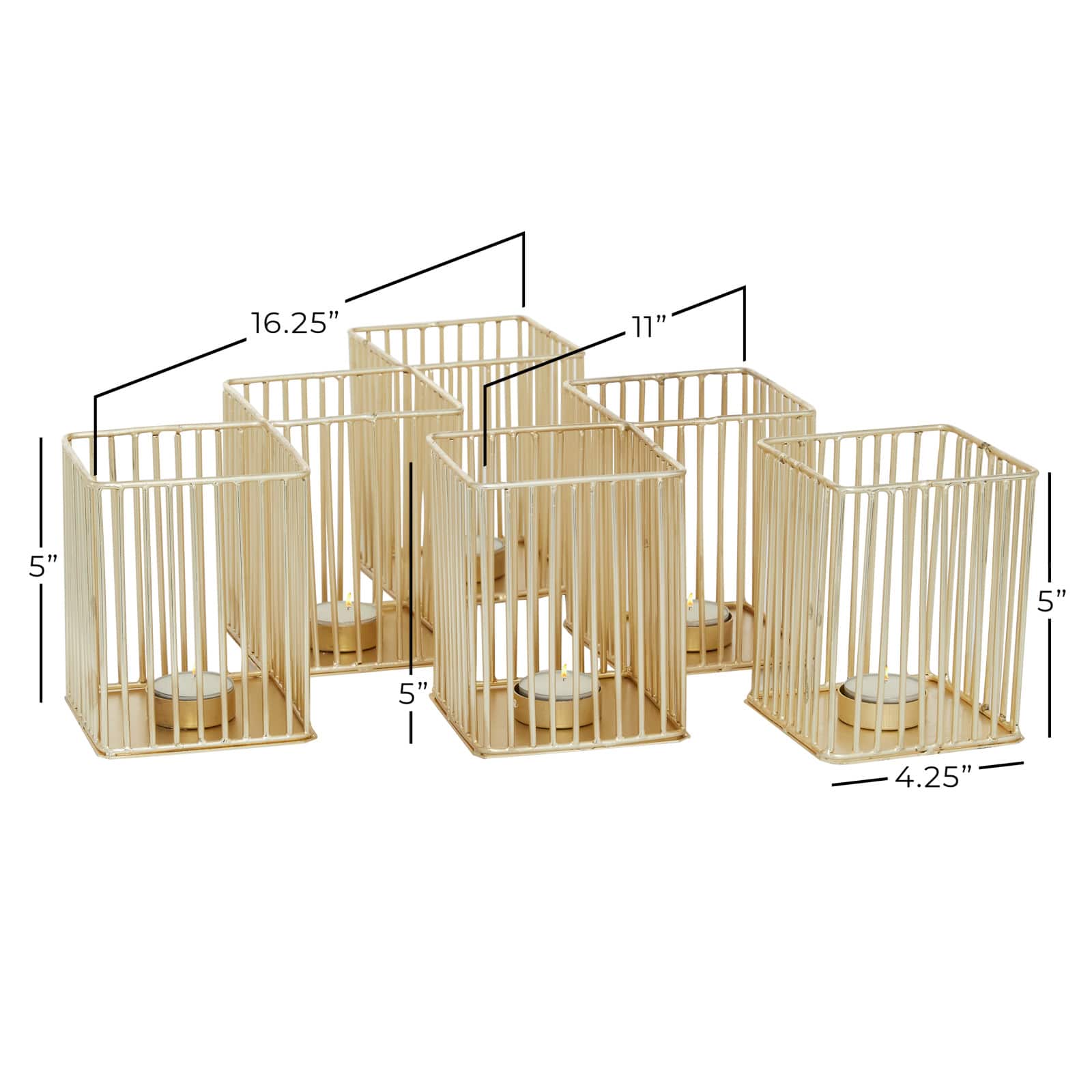 Set of 3 Gold Metal Modern Candle Holder, 4.25", 11", 16.25"