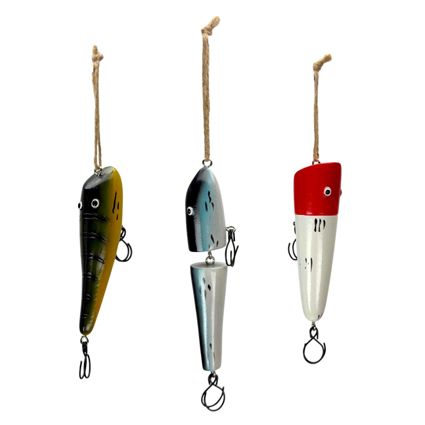 Set of 3 Hanging Fishing Lure Ornaments Hand Painted Resin Nautical Decor