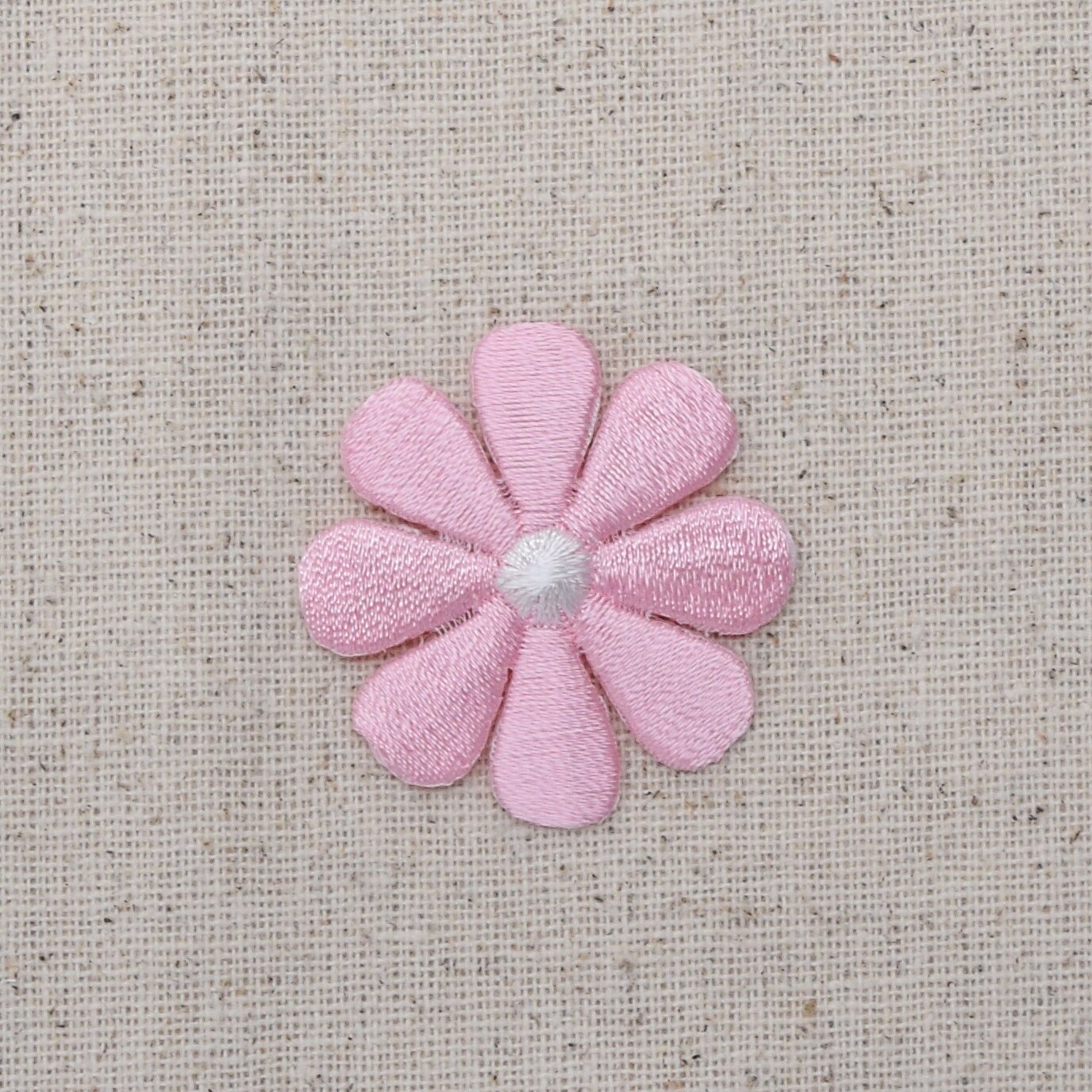 Set of 3, Medium Light Pink Daisy Flower Embroidered, Iron on Patch