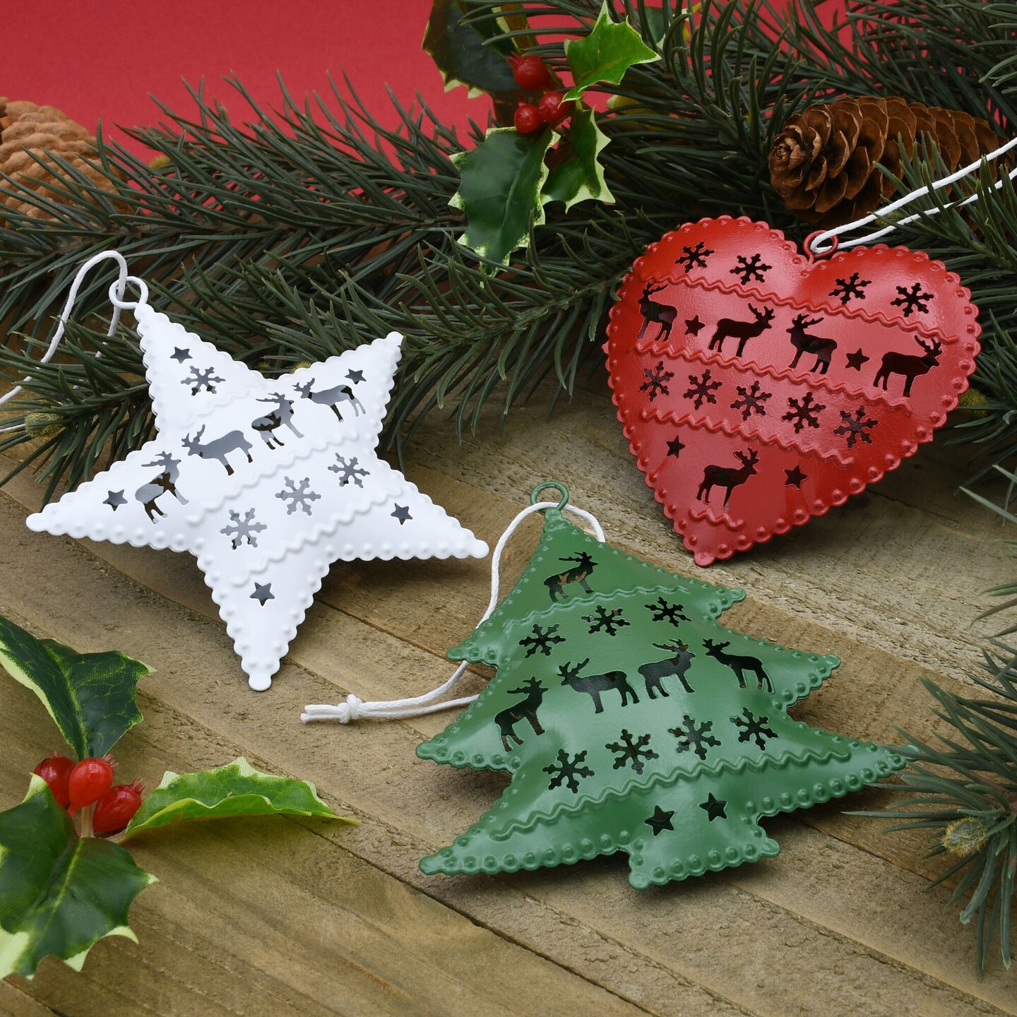 Set of 3 Metal Christmas Ornaments