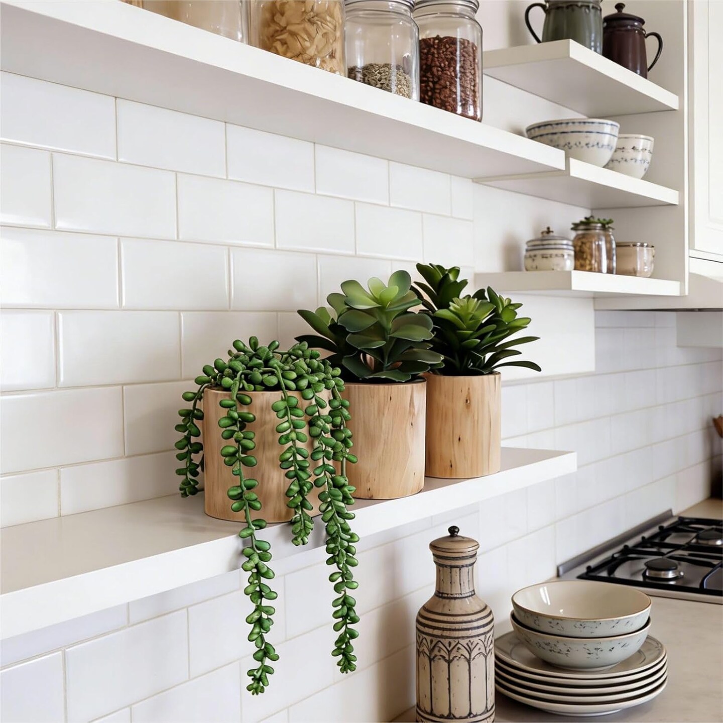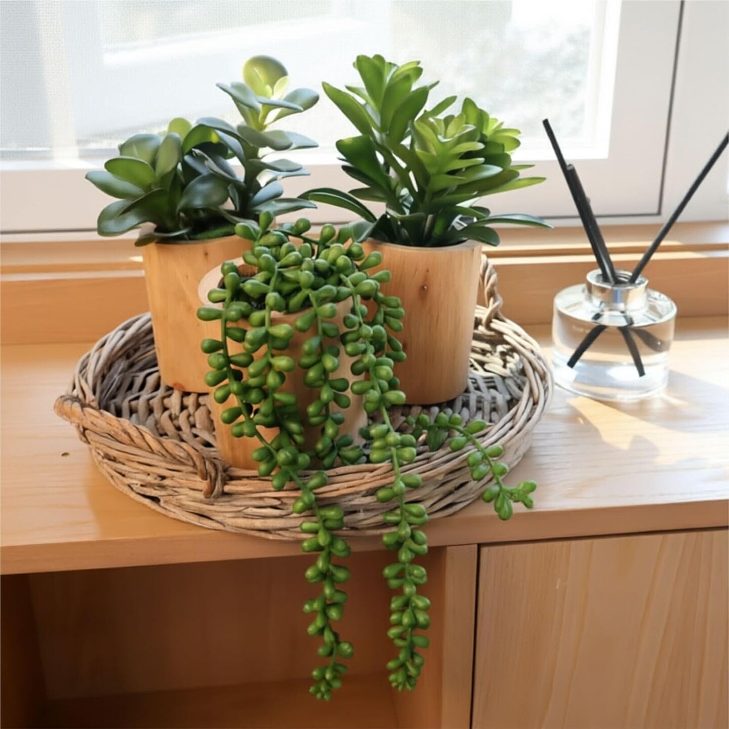 Set of 3 Mini Artificial Succulents in Pots – Realistic Faux Small Potted Plants for Aesthetic Room Decor, Office Desk, Bathroom & Bookshelf Modern Home Accents
