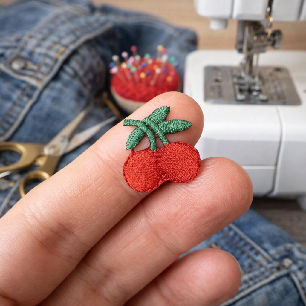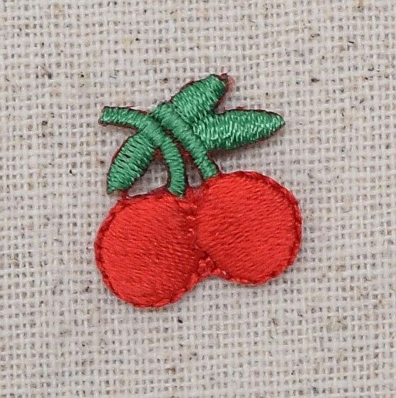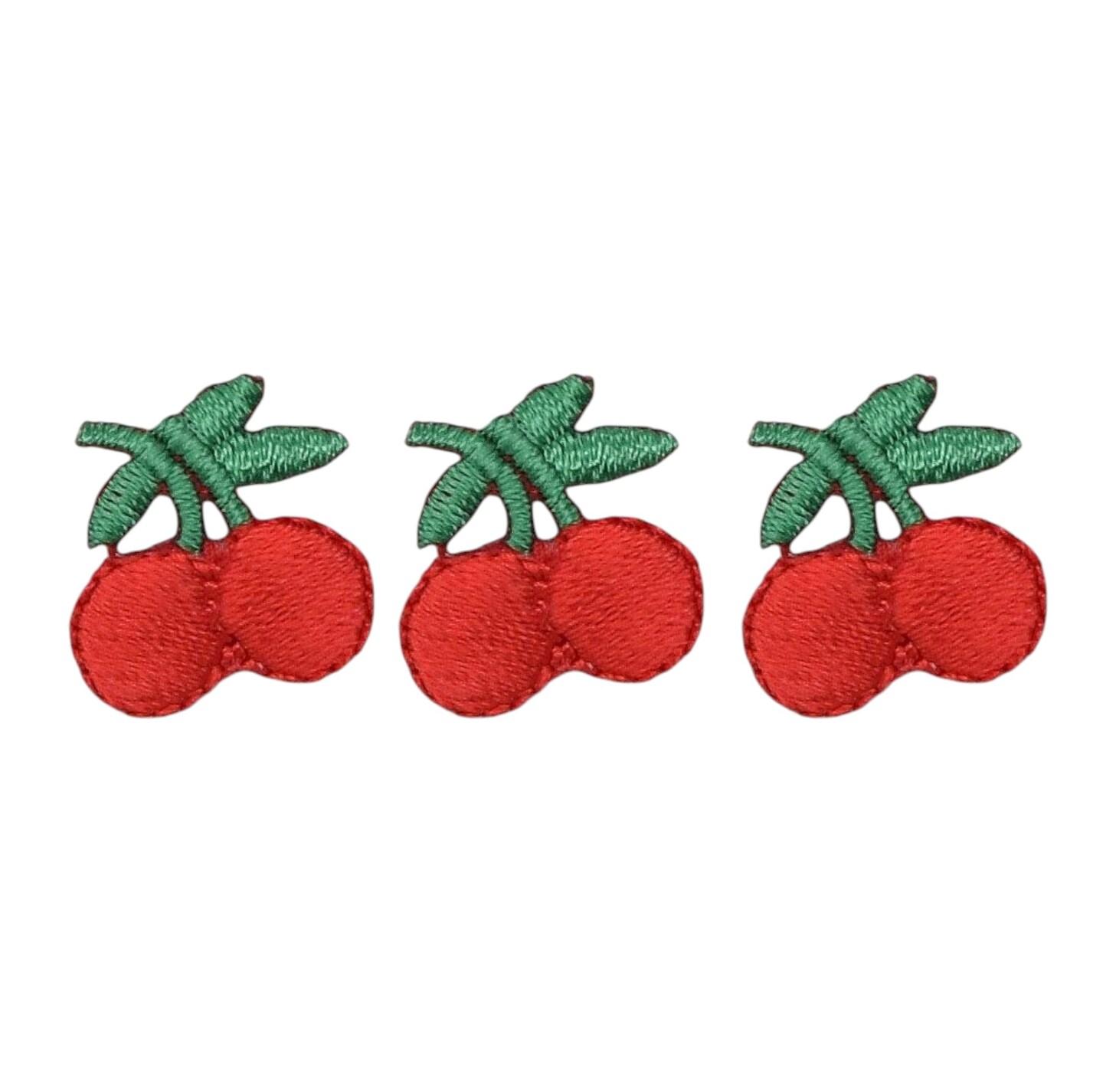 Set of 3, Mini Red Cherries Embroidered, Iron on Patch