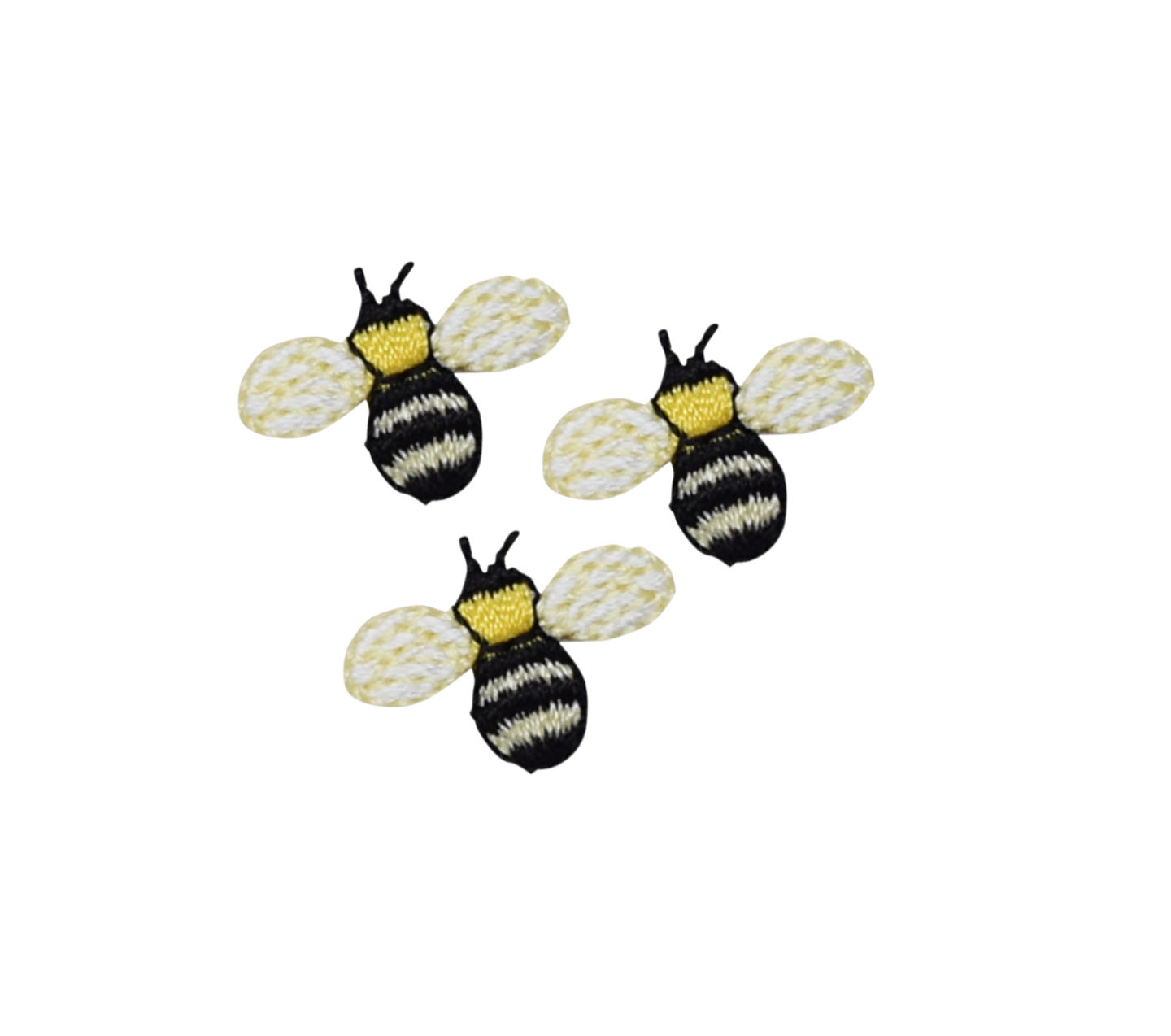 Set of 3, Mini Yellow Bumble Bee, Embroidered, Iron on Patch