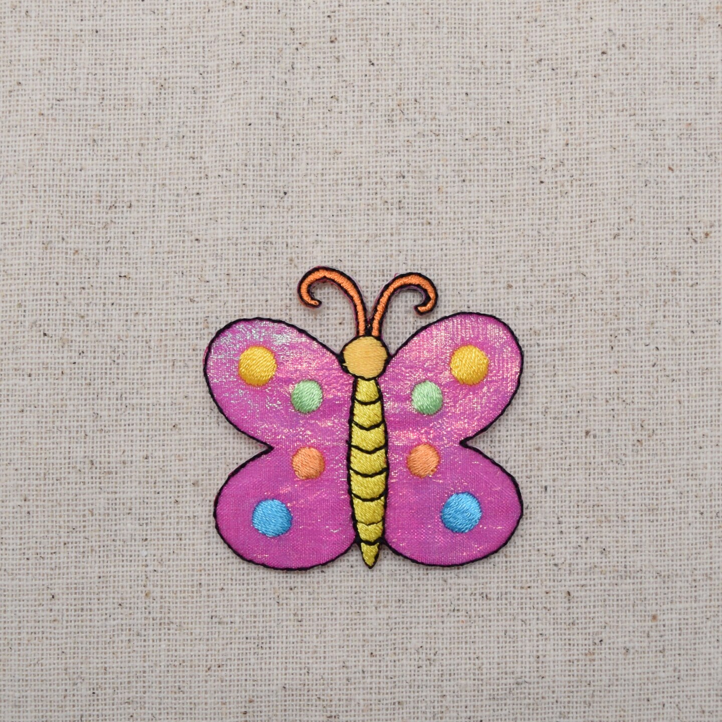 Set of 3, Pink Shimmery Butterfly with Polka Dots, Embroidered, Iron on Patch