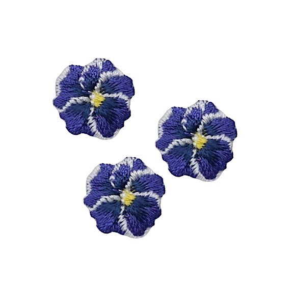 (Set of 3) Purple Pansy, Flowers, Embroidered, Iron on Patch