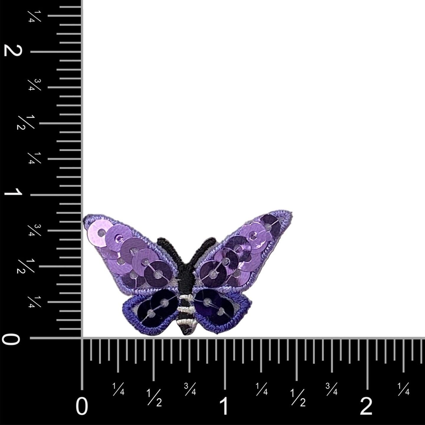 Set of 3, Purple Sequin Butterfly, Embroidered, Iron on Patch