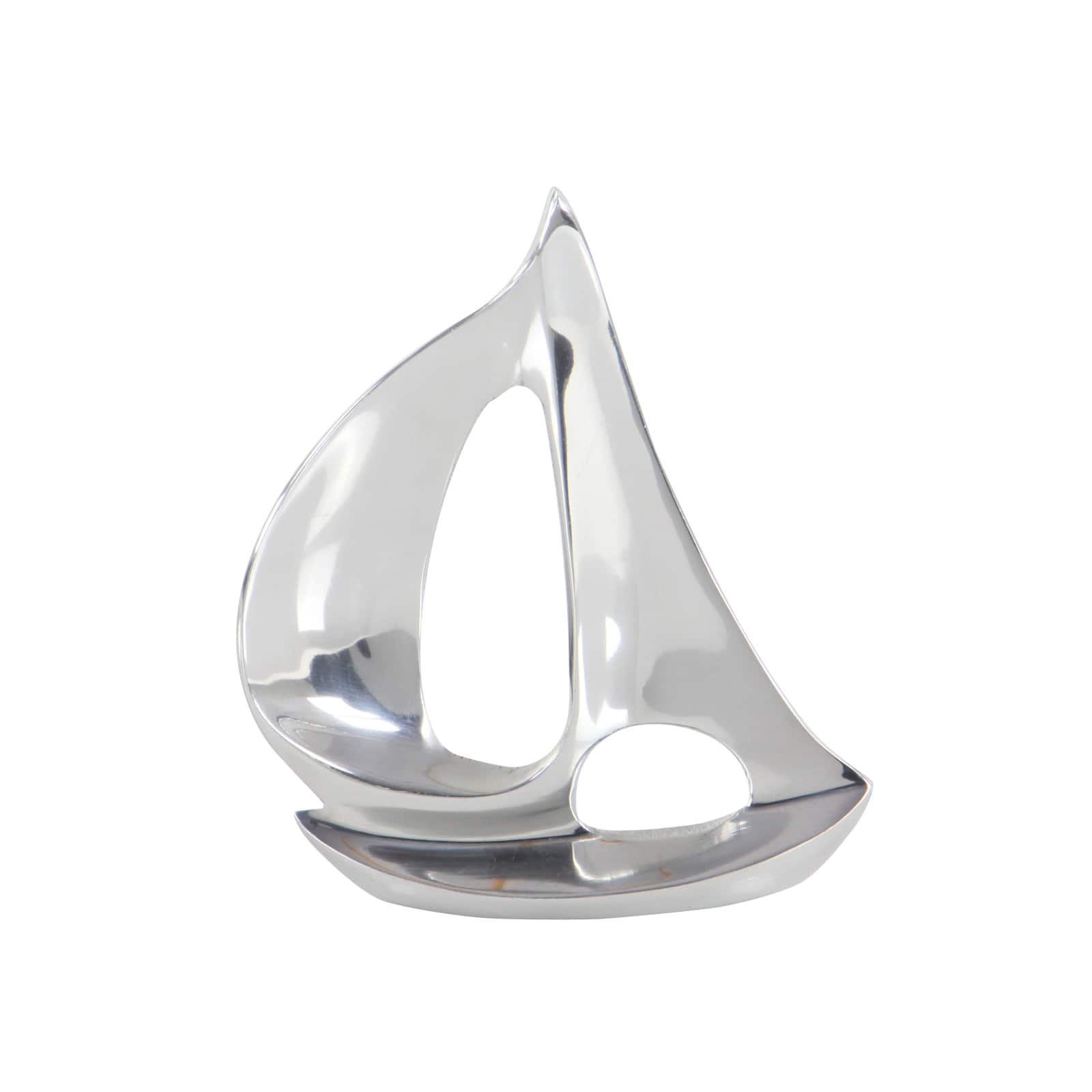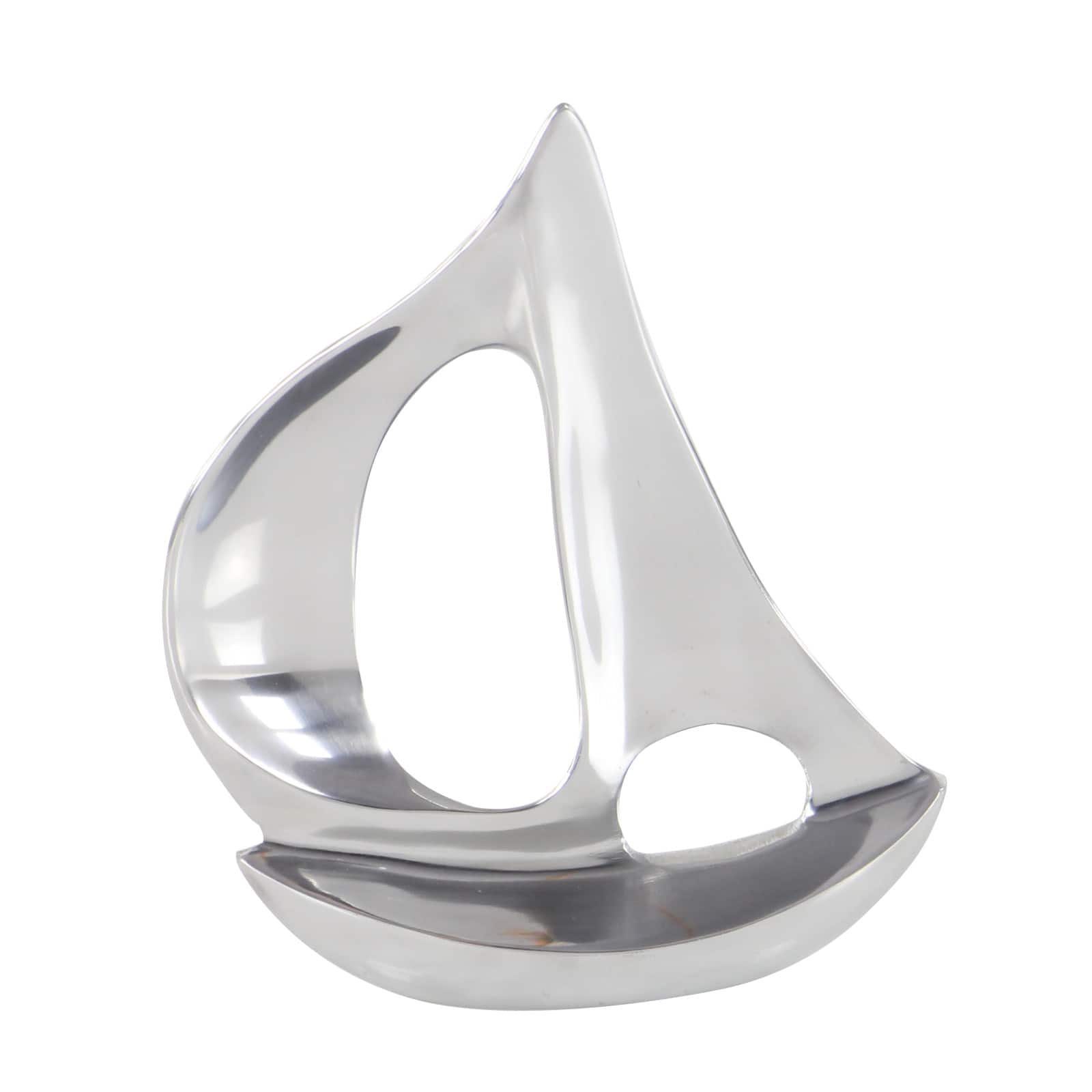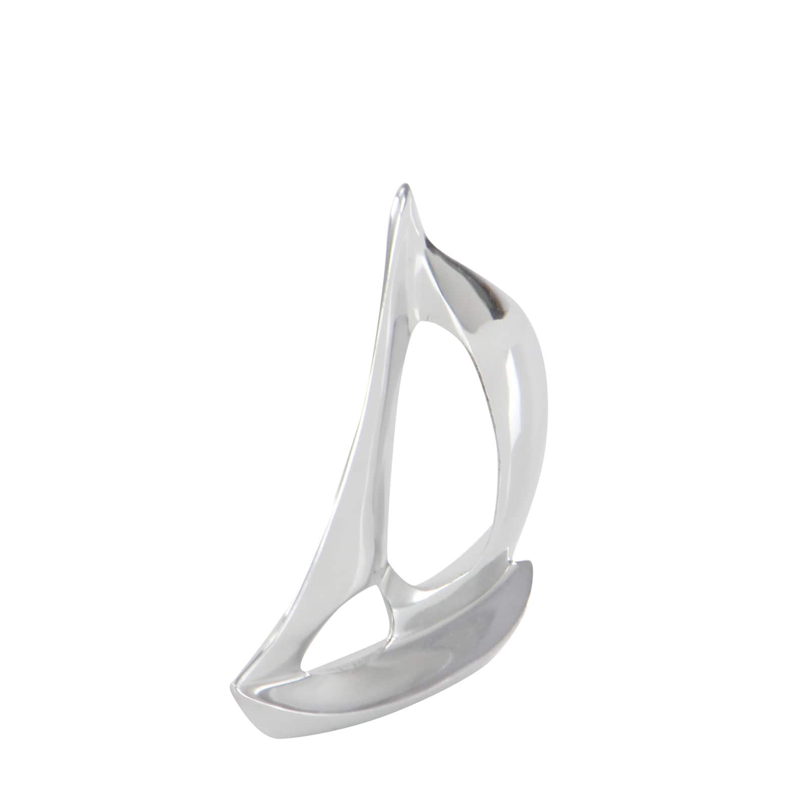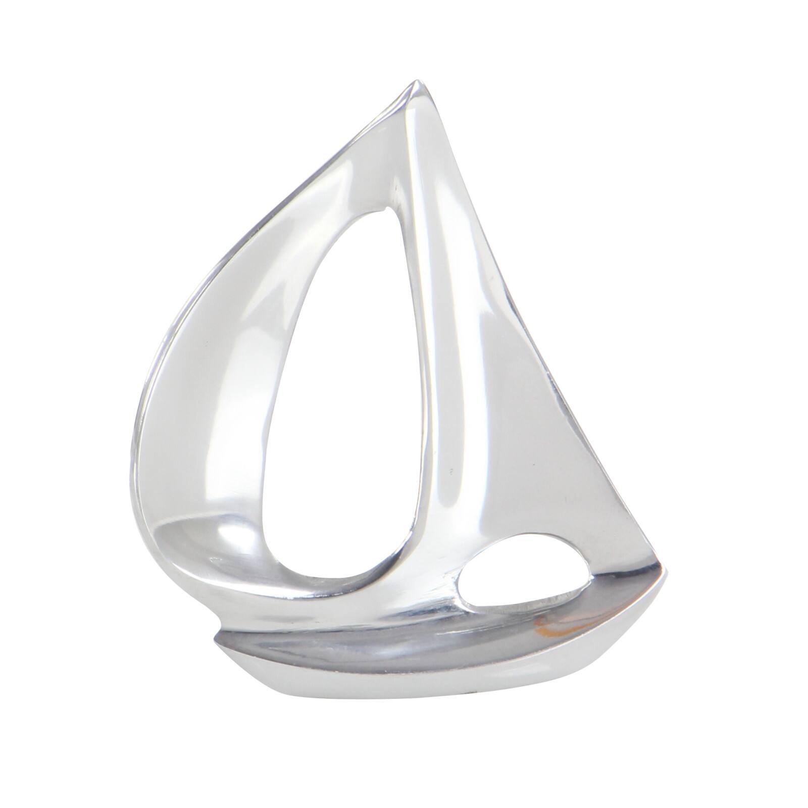 Set of 3 Silver Aluminum Coastal Sail Boat Sculpture, 12", 8", 7"