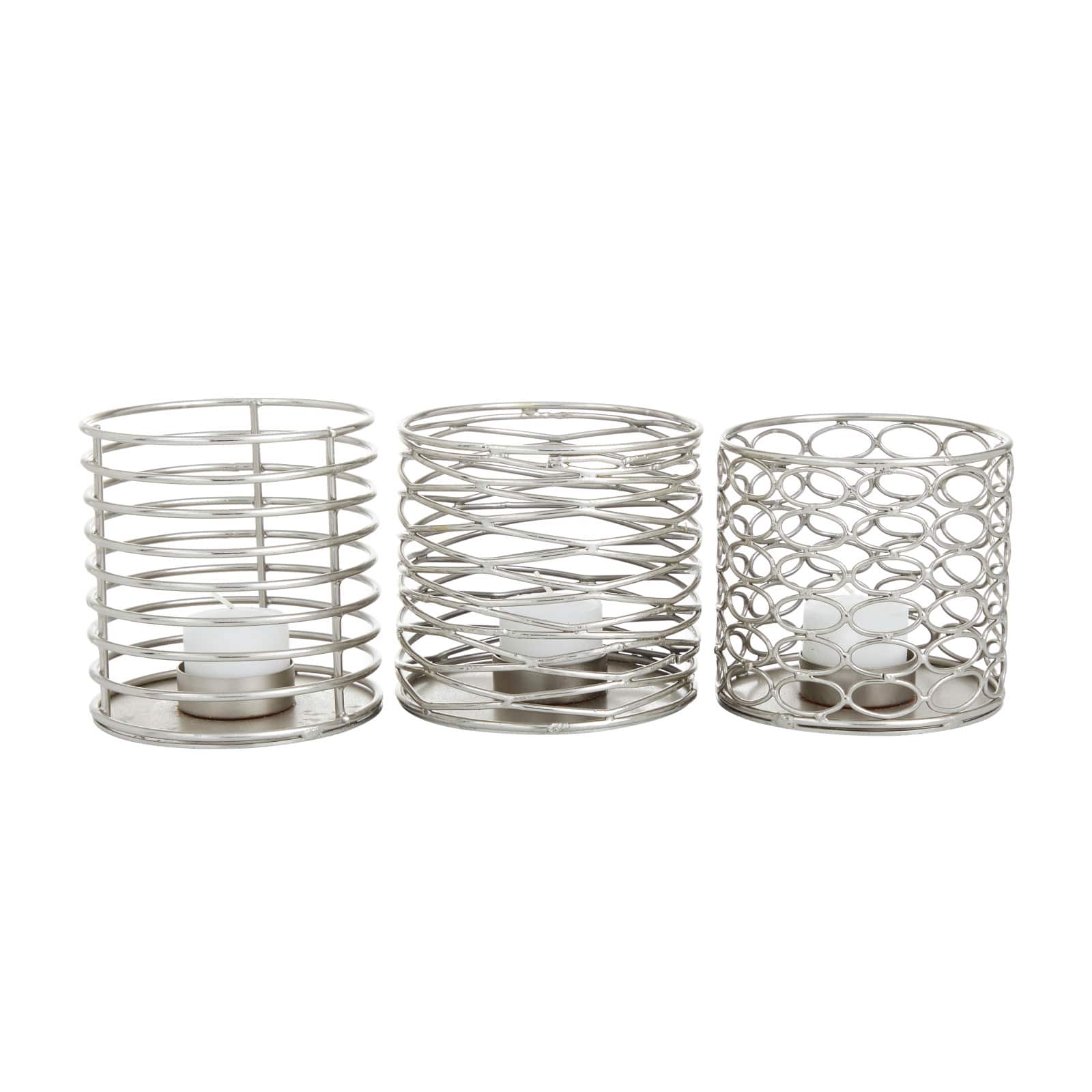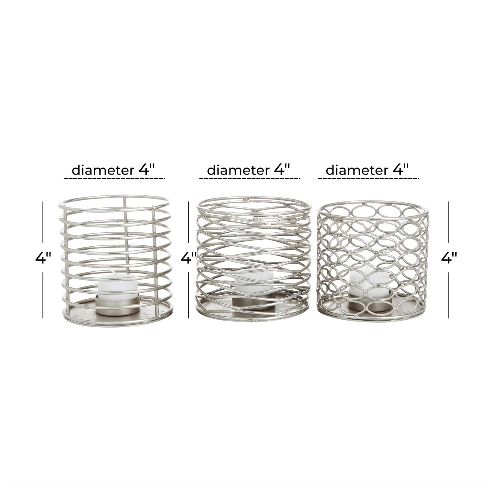 Set of 3 Silver Iron Modern Candle Holders, 4" x 4" x 4"