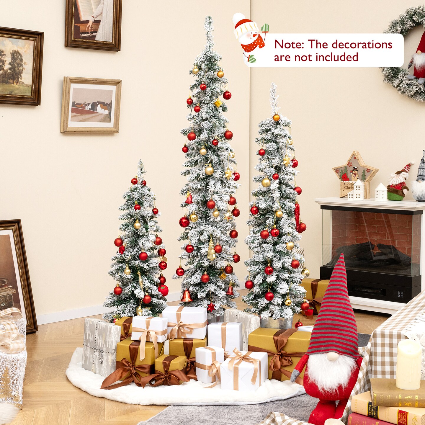 Set of 3 Snow Flocked Pre-Lit Christmas Trees with 8 Lighting Modes