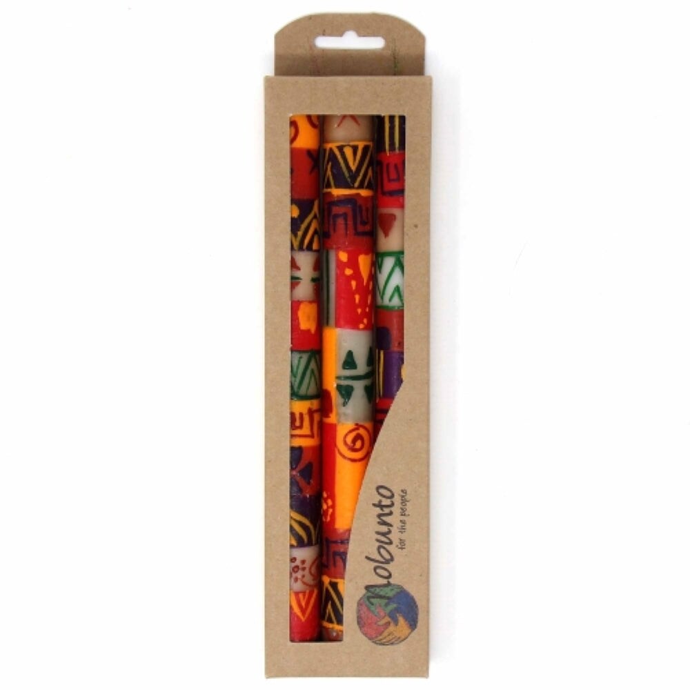 Set of 3 Tall Hand Painted Candles Decorative Taper Candles Gift Boxed