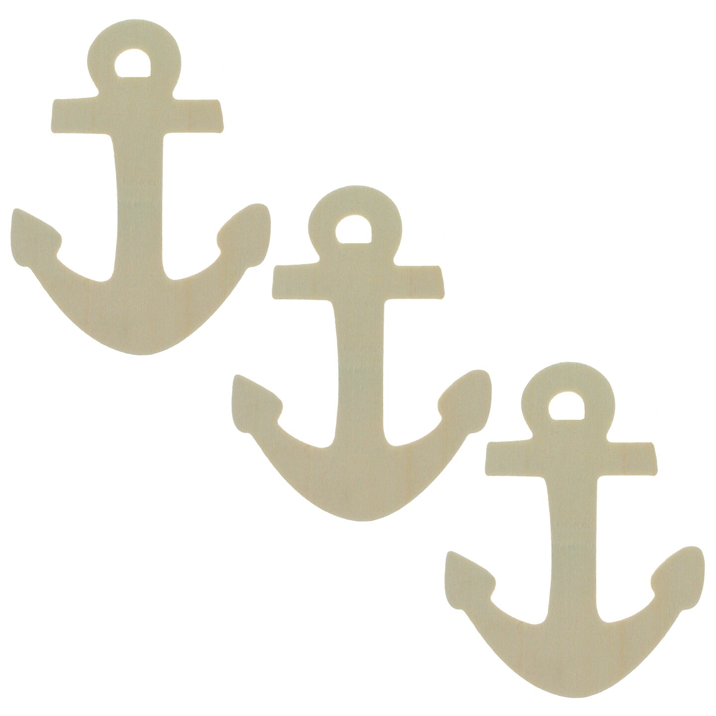 Set of 3 Unfinished Wooden Anchor Shape Cutout DIY Craft 4.25 Inches