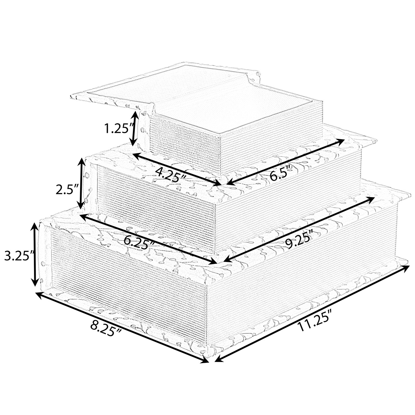 Set of 3 Velvet Vintage Storage Wooden Antique Classic Decorative Book Box Holder
