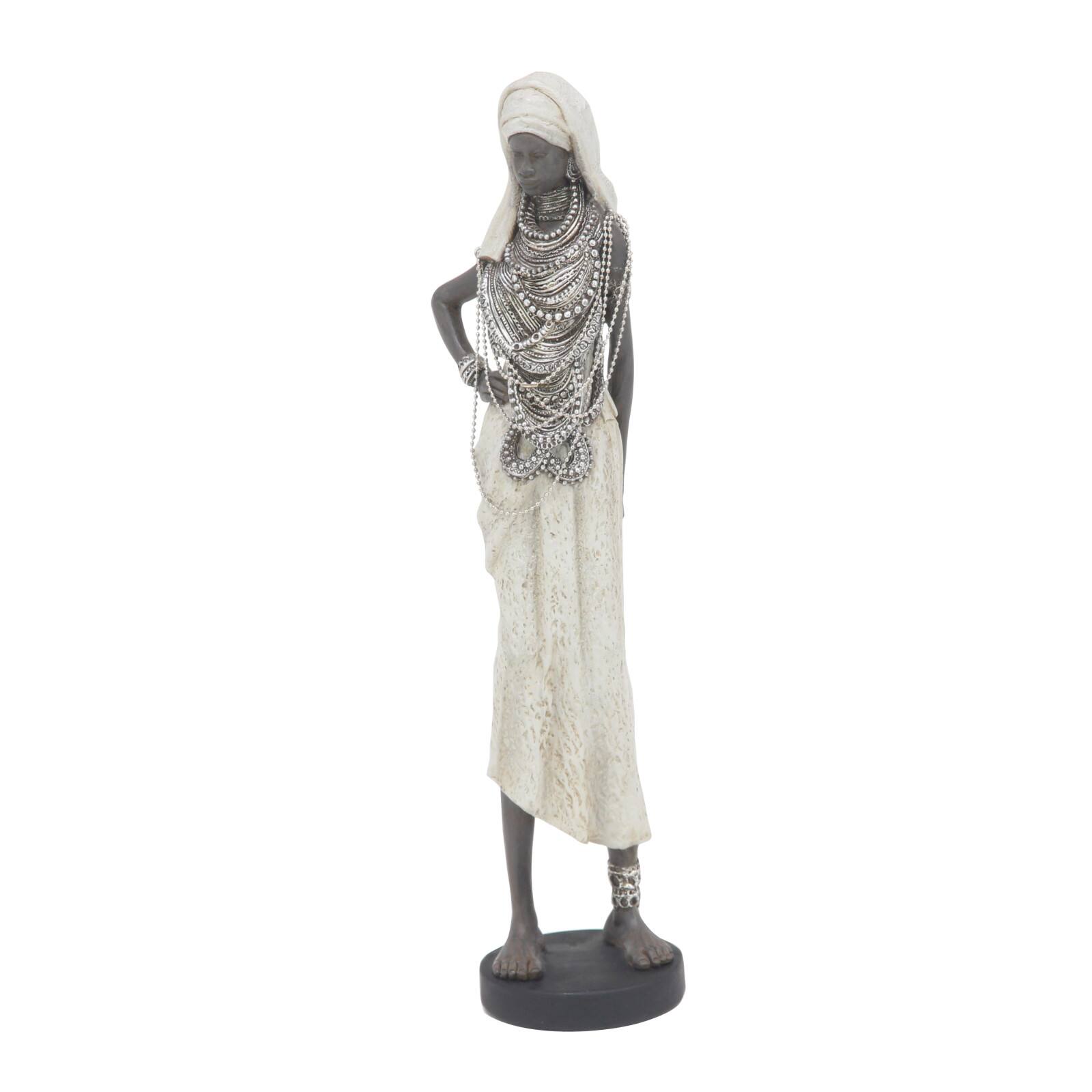 Set of 3 White Eclectic Polystone Women Sculpture 15", 20", 24"
