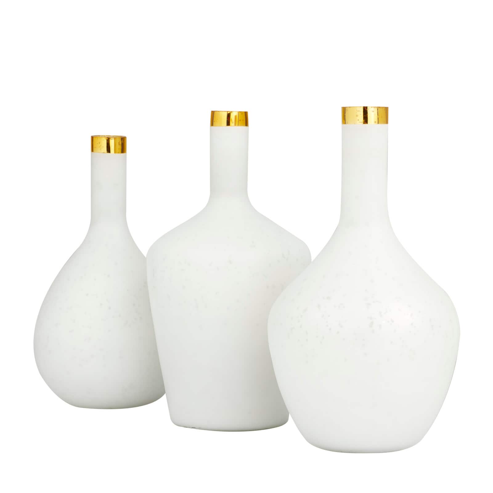 Set of 3" White Glass Glam Vases, 13" x 8" x 8"