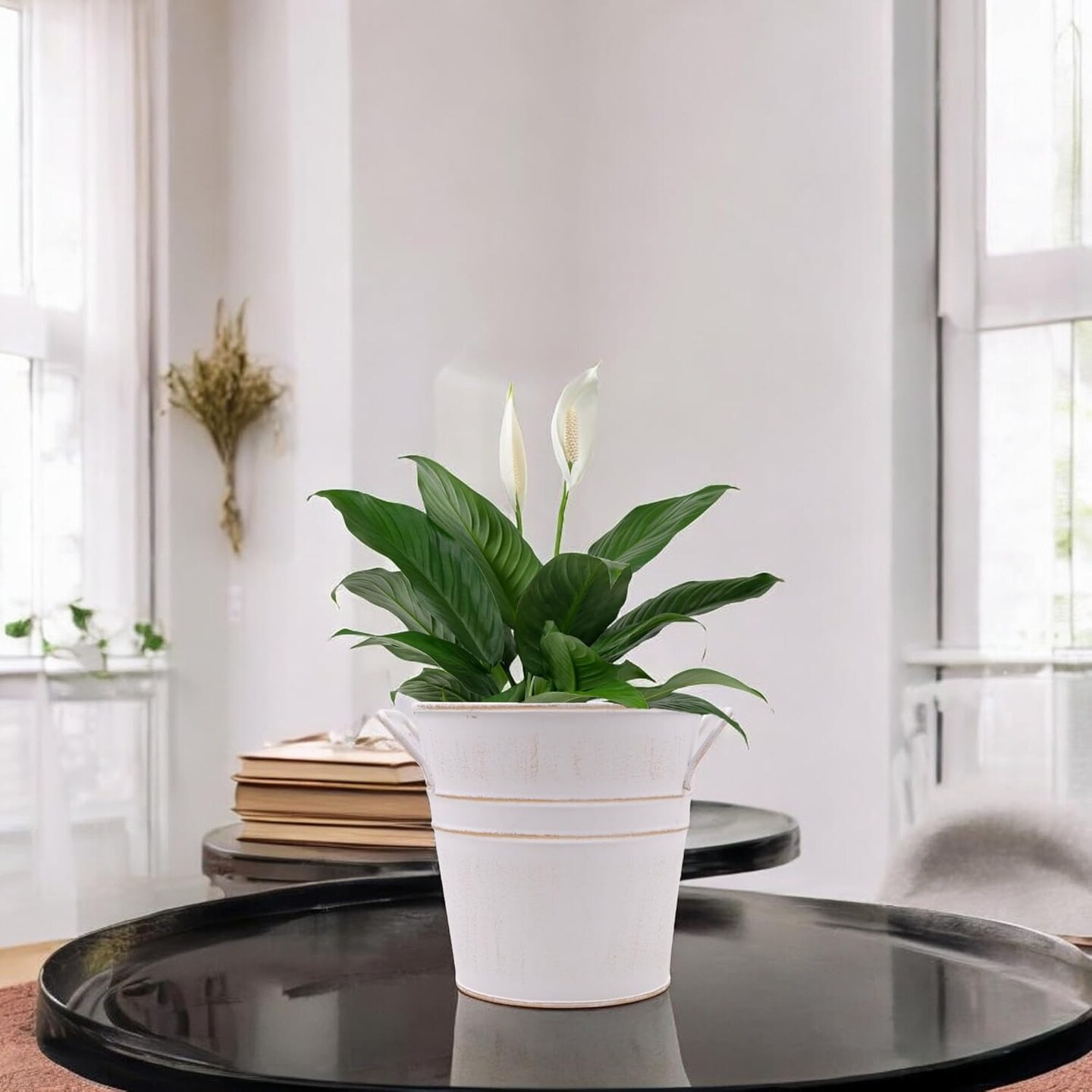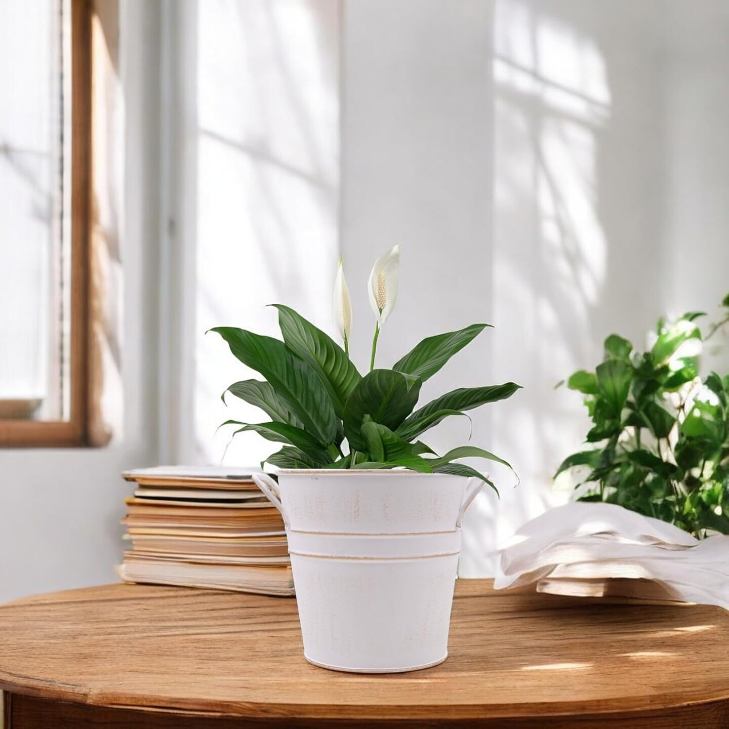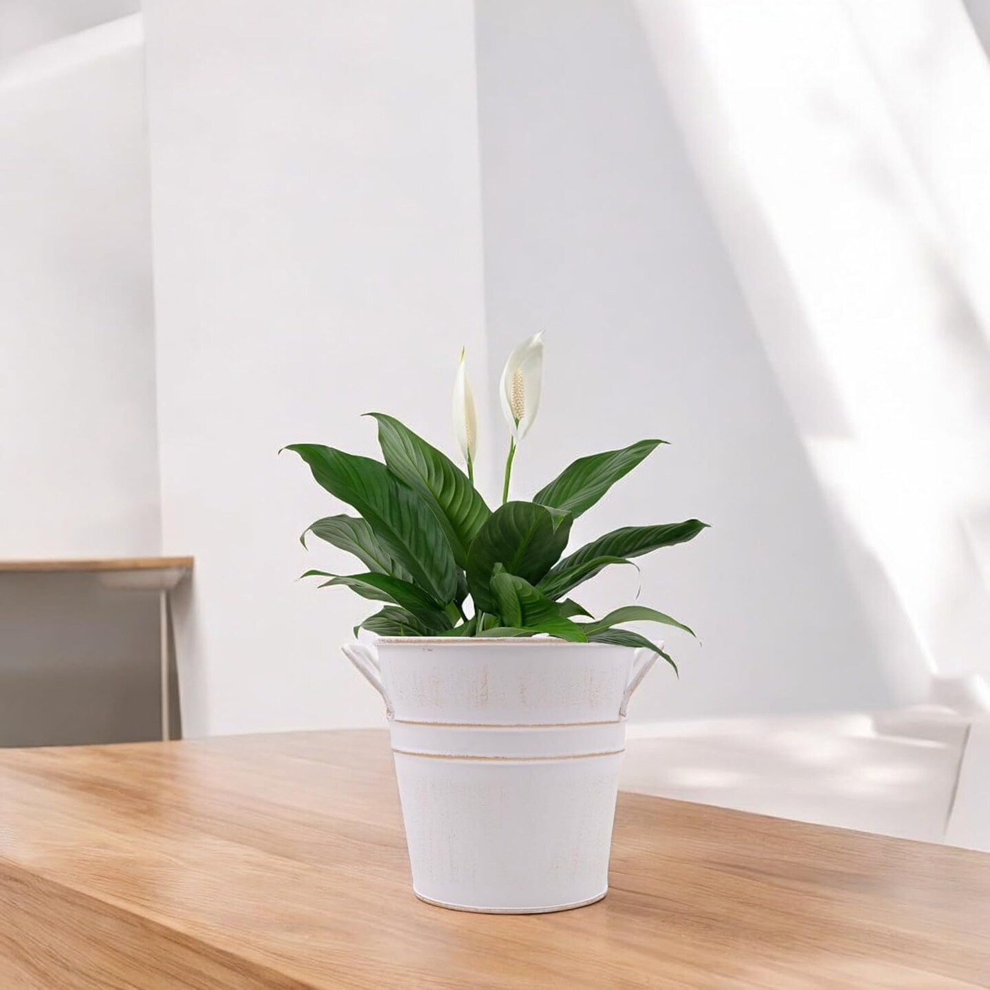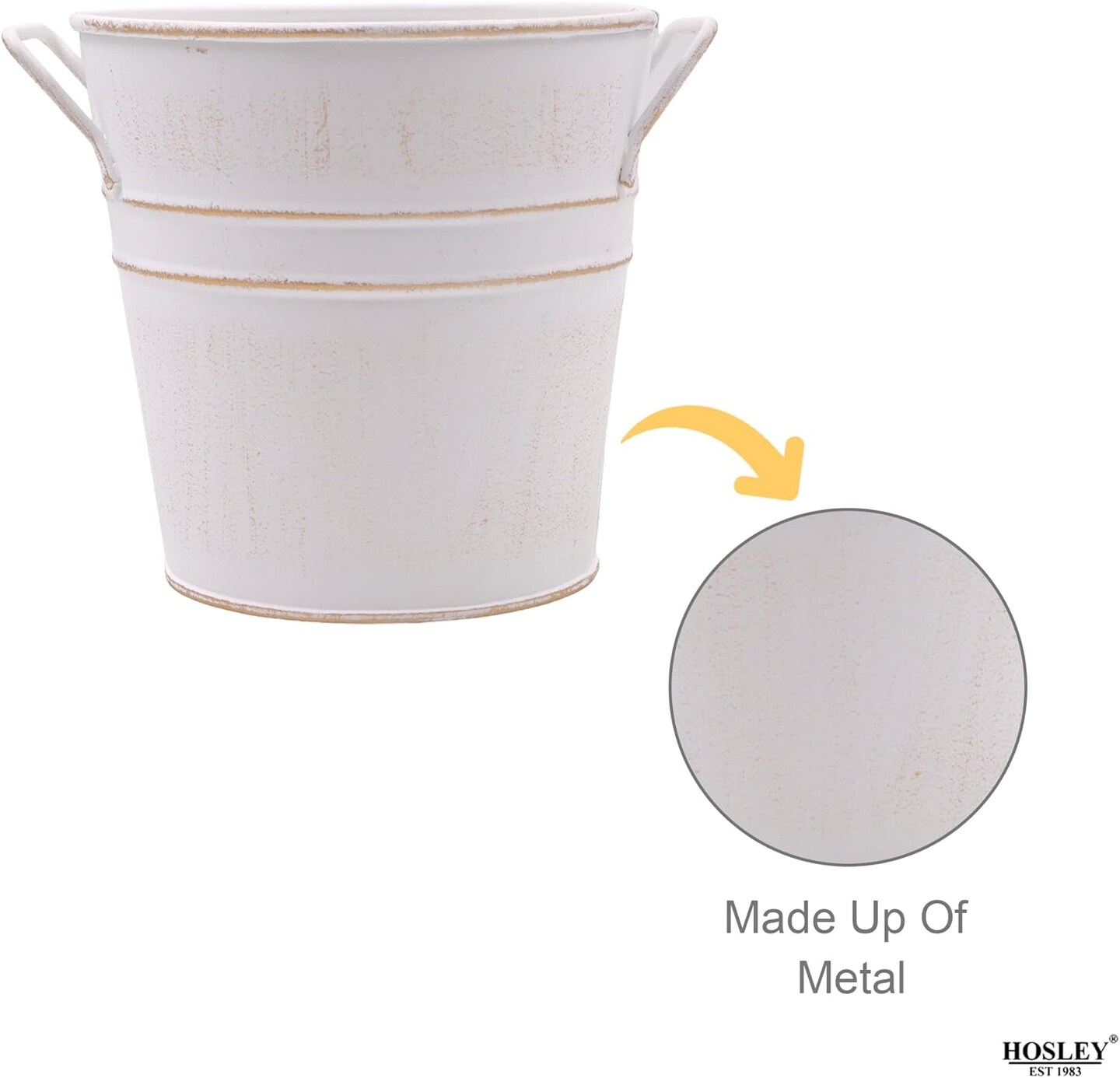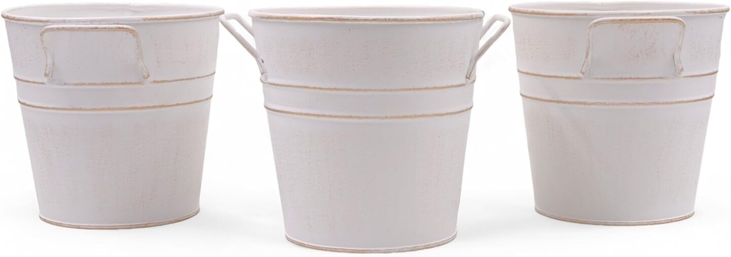 Set of 3 White Metal Bucket (White)