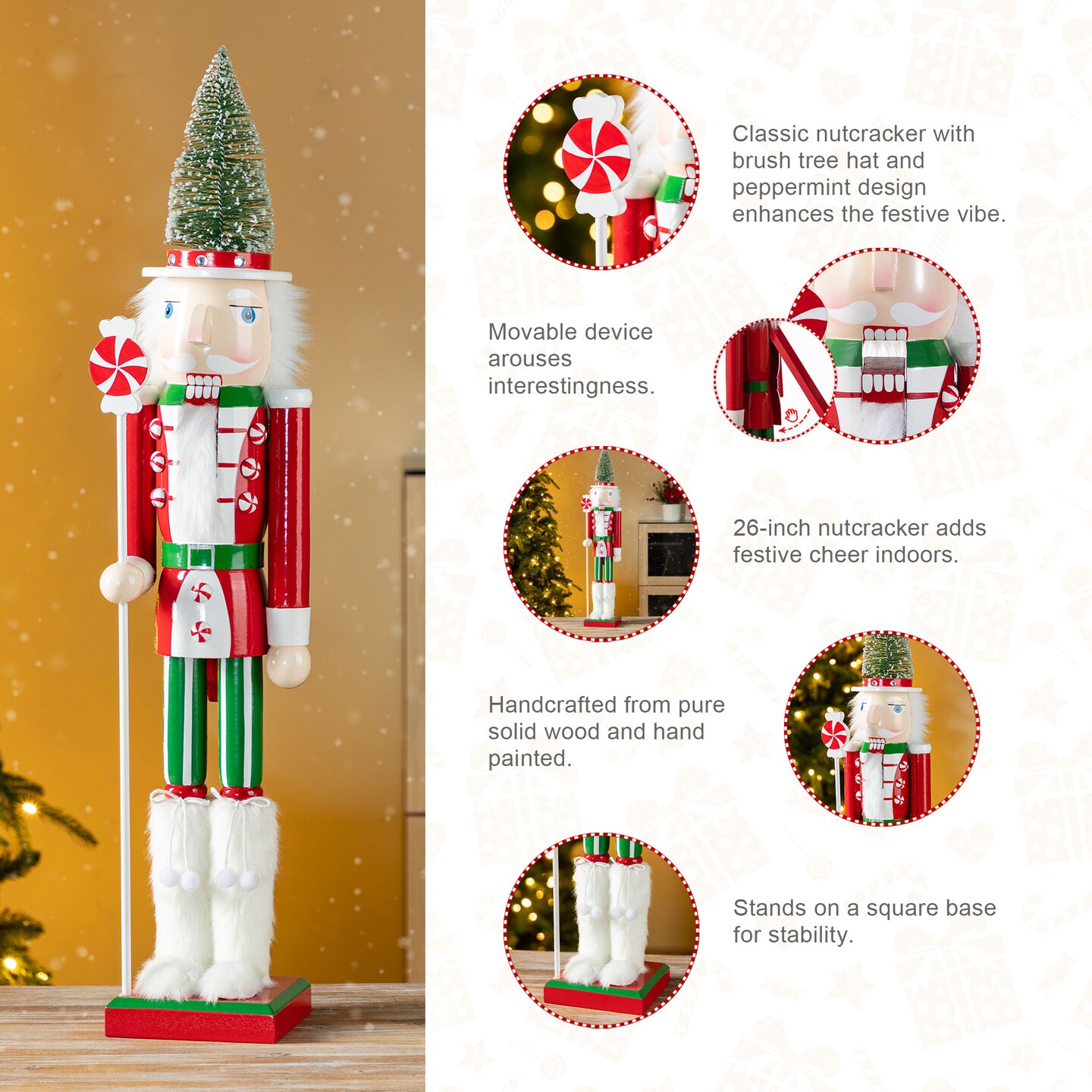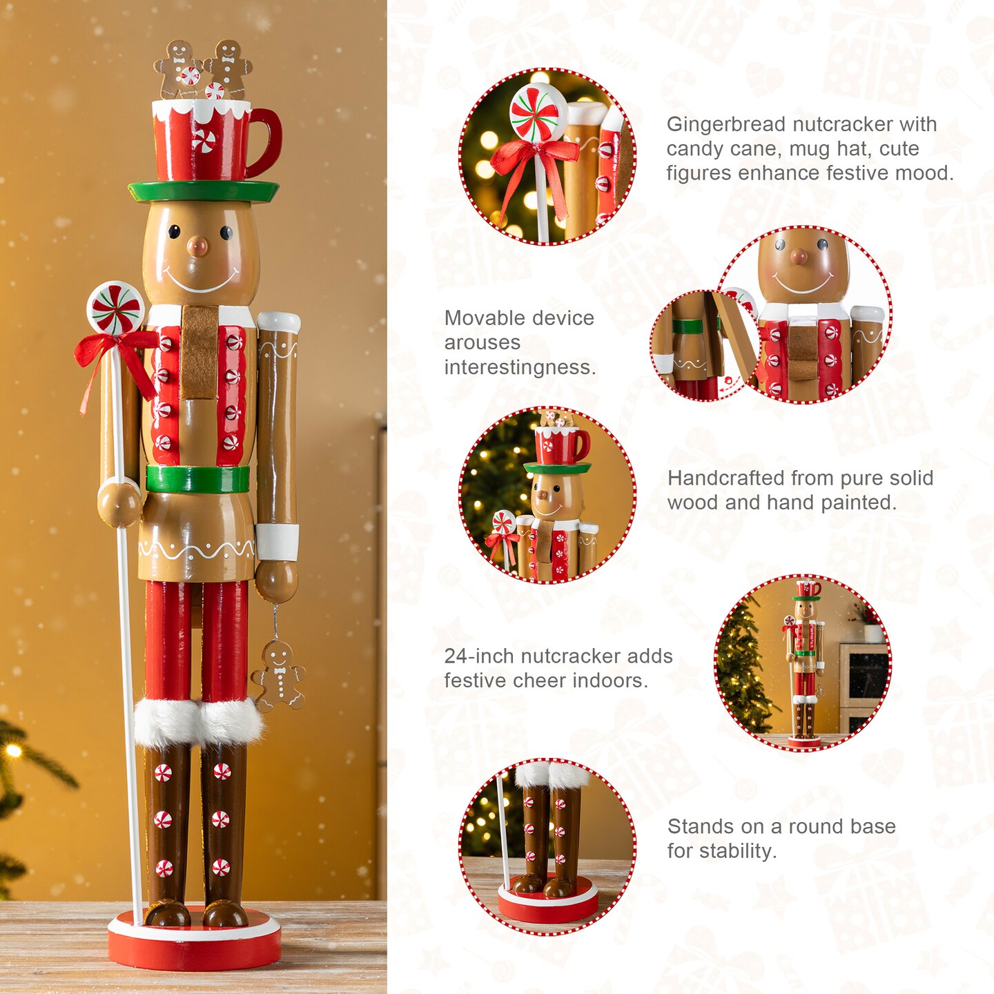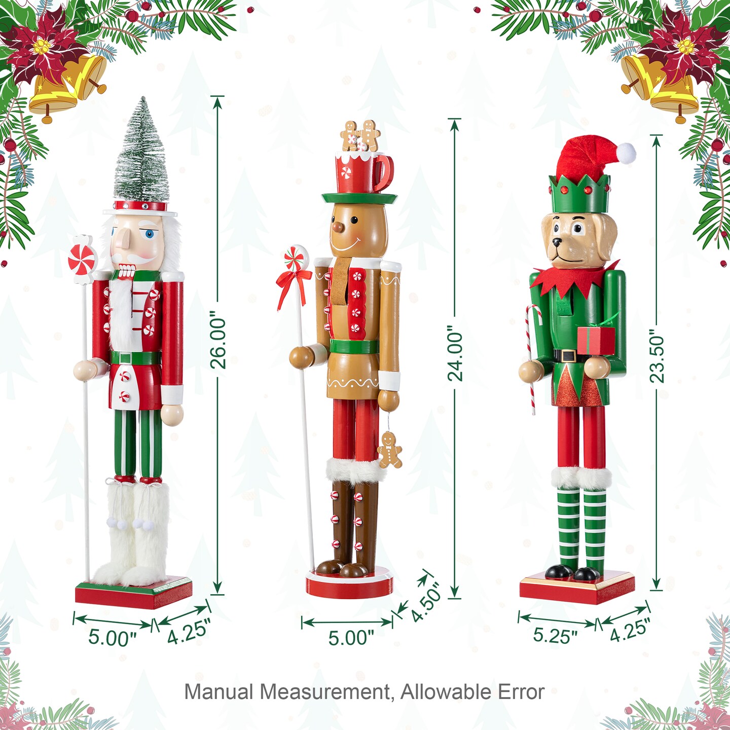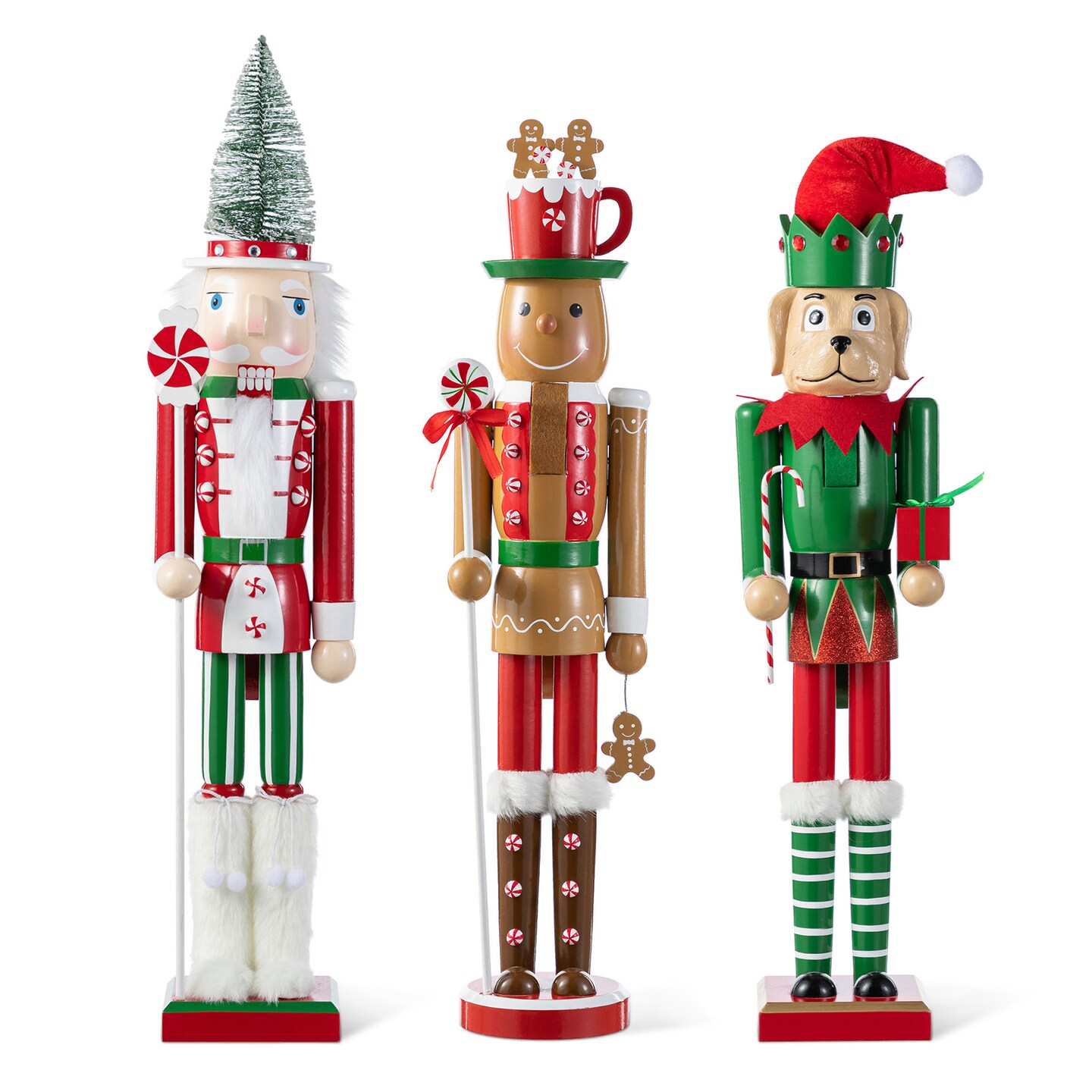 Set of 3 Wooden Christmas Green Brush Tree & Gingerbread Man & Elf Dog Nutcrackers