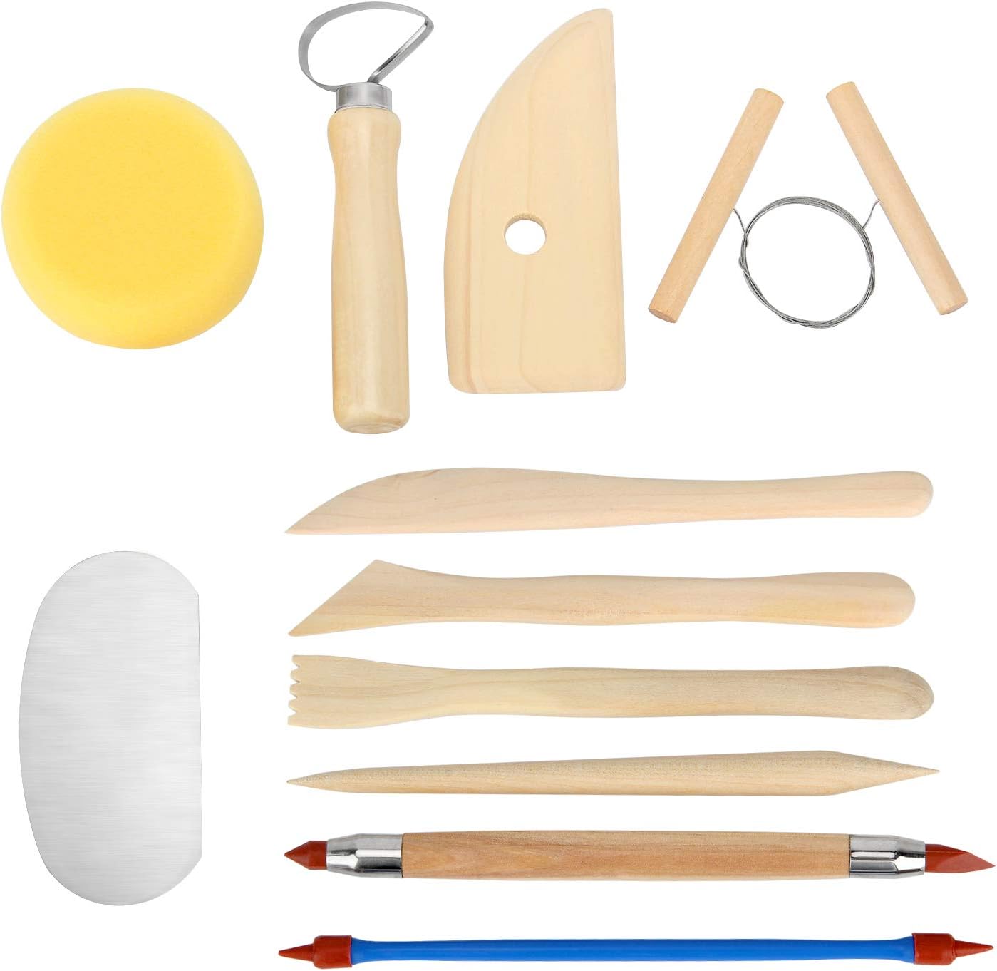 Set of 30 Clay Sculpting Tool Wooden Handle Pottery Carving Tool Kit Carrying Box Apron