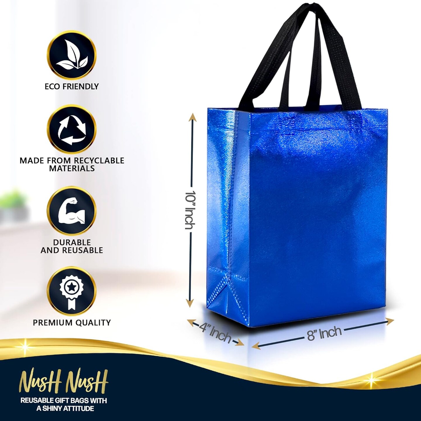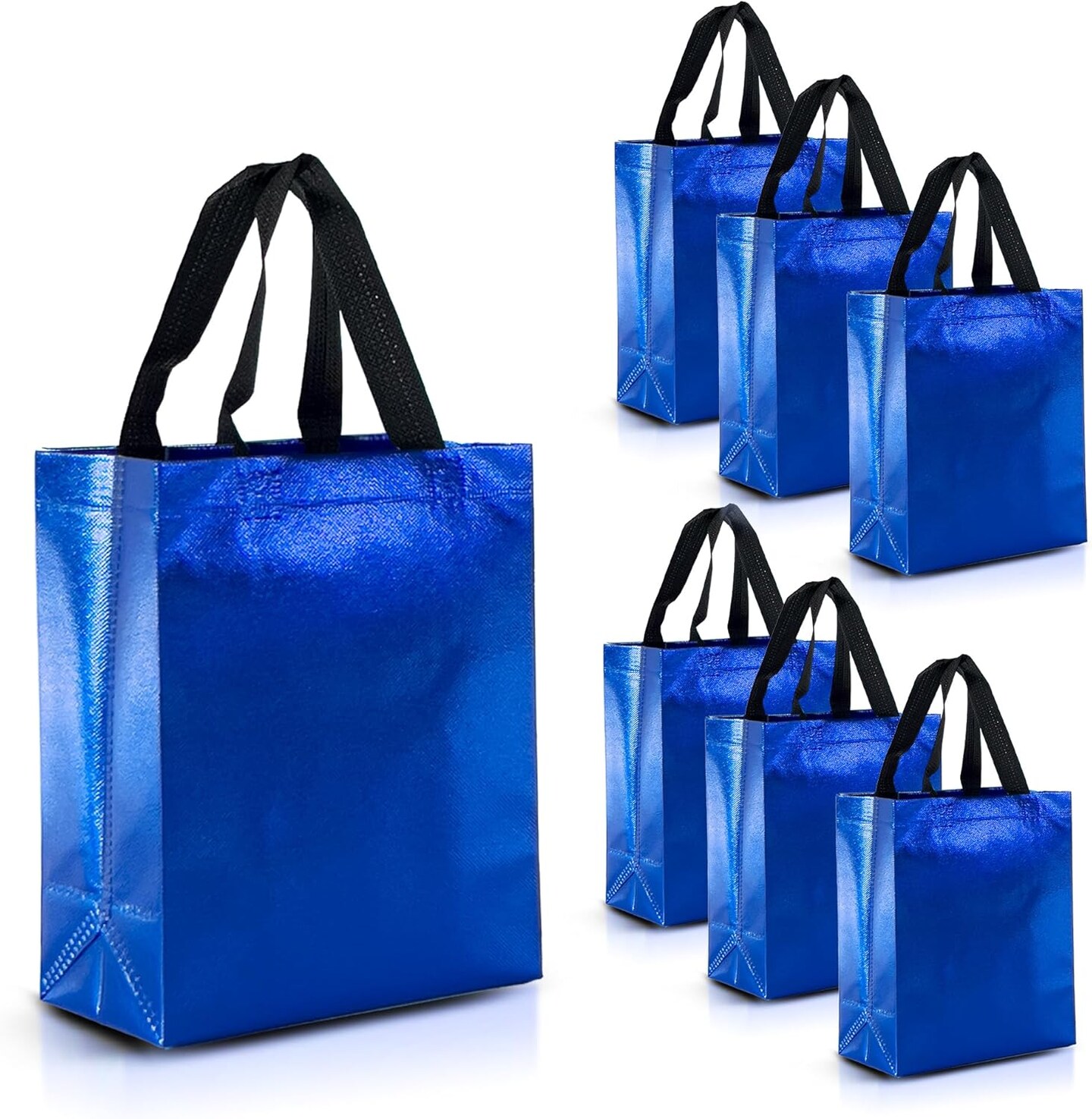 Set of 30 Shiny Blue Gift Bags in Bulk - Blue Reusable Gift Bags Medium Size - Goodie Bags, Birthday Gift Bags With Handles, Party Favor Bags, Goody Bags, Return Gift Bags - 8Wx4Dx10H Size