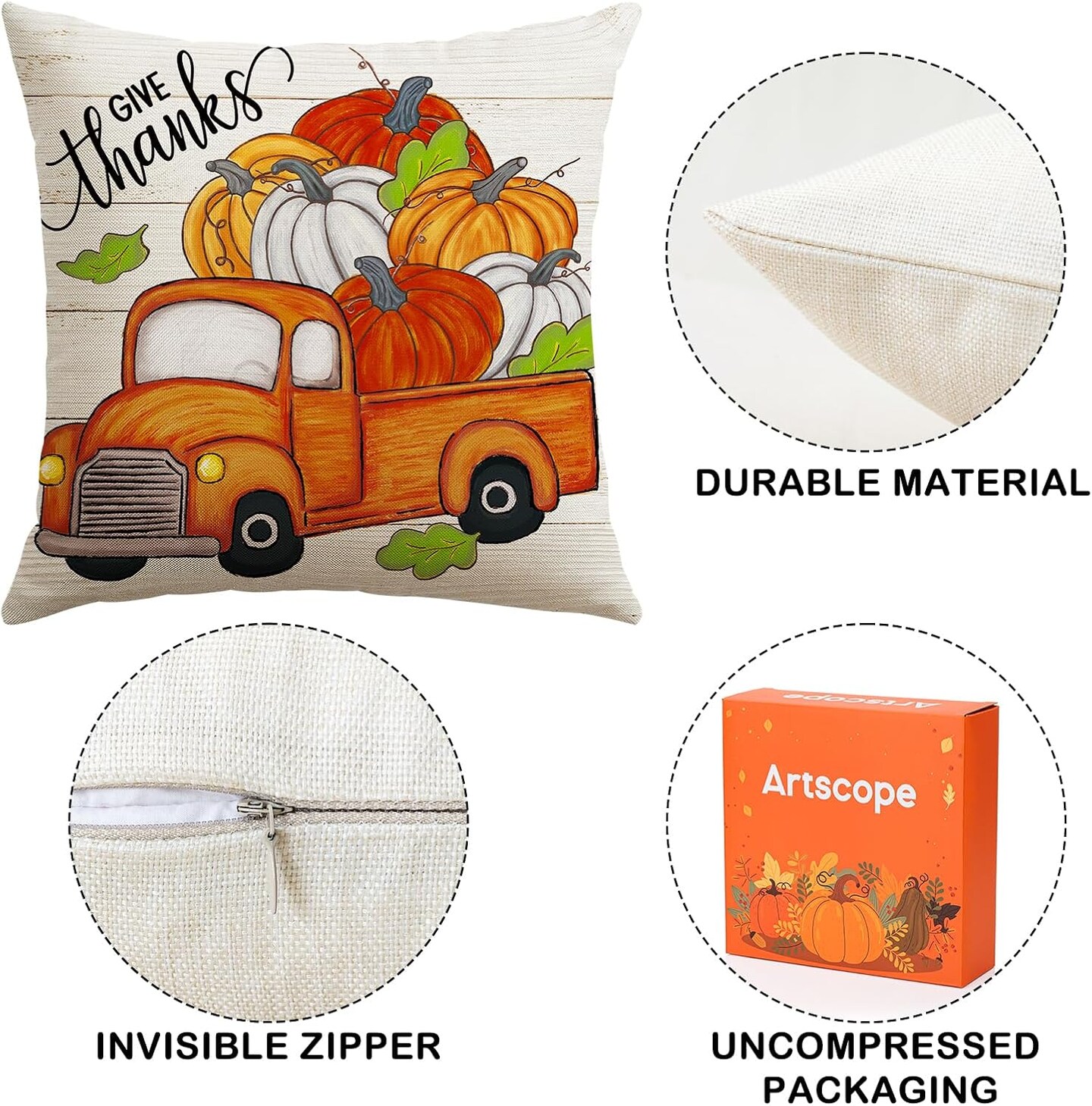 Set of 4 Fall Decorative Throw Pillow Covers 20x20 Inch