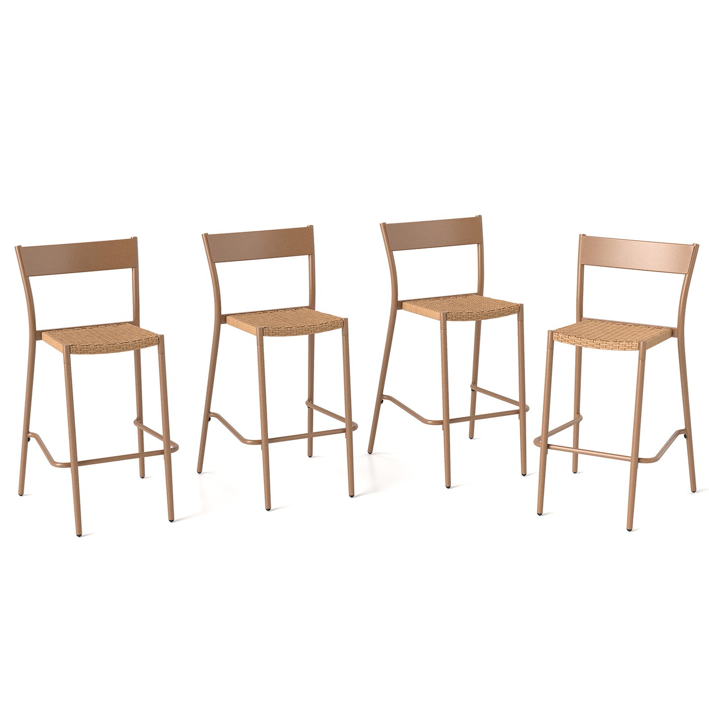 Set of 4 Light Brown Rattan Bar Stools 29" Outdoor High Chairs with Backrest Metal Frame Footrest Support