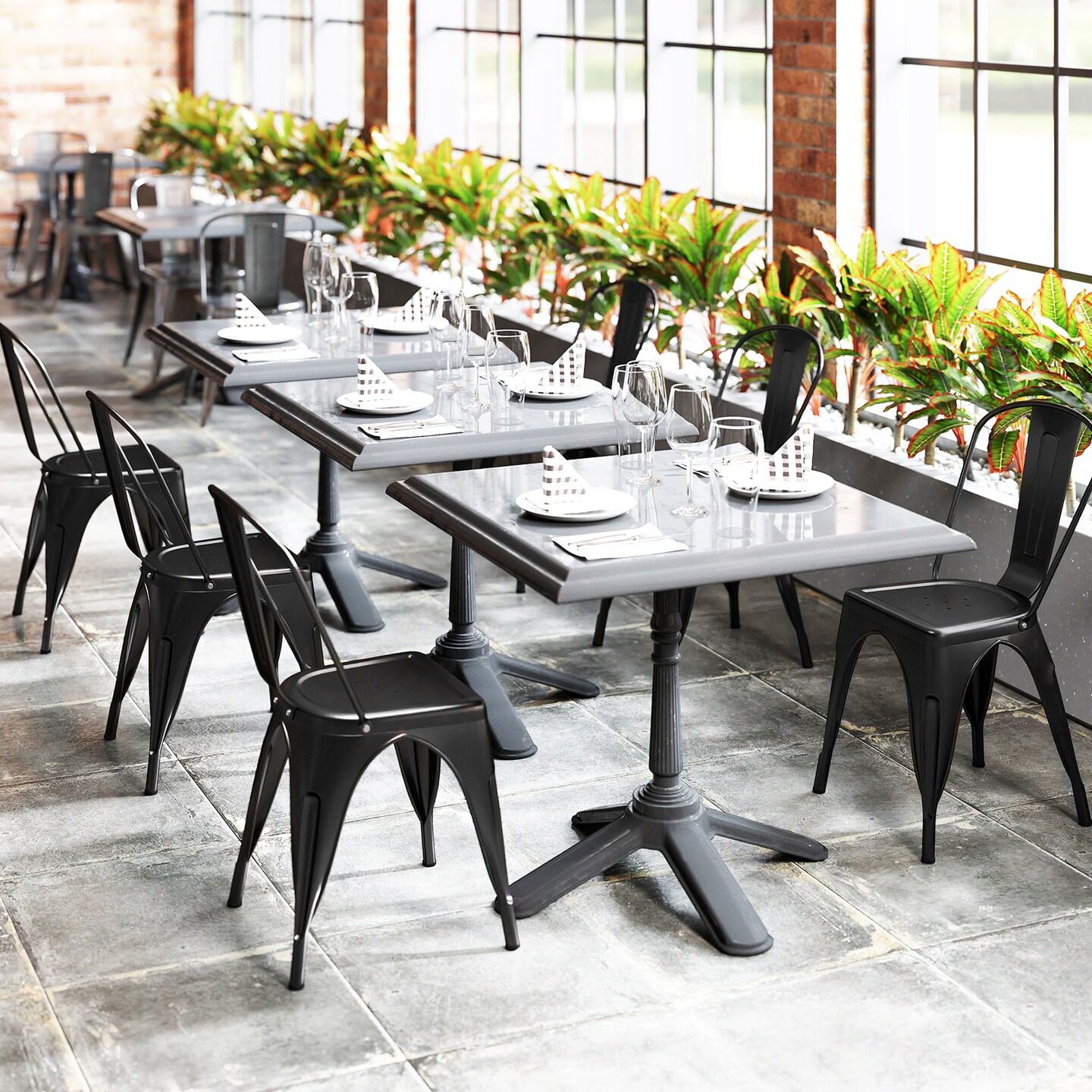 Set of 4 Metal Dining Chairs with Removable Backrest and Anti-slip Pads