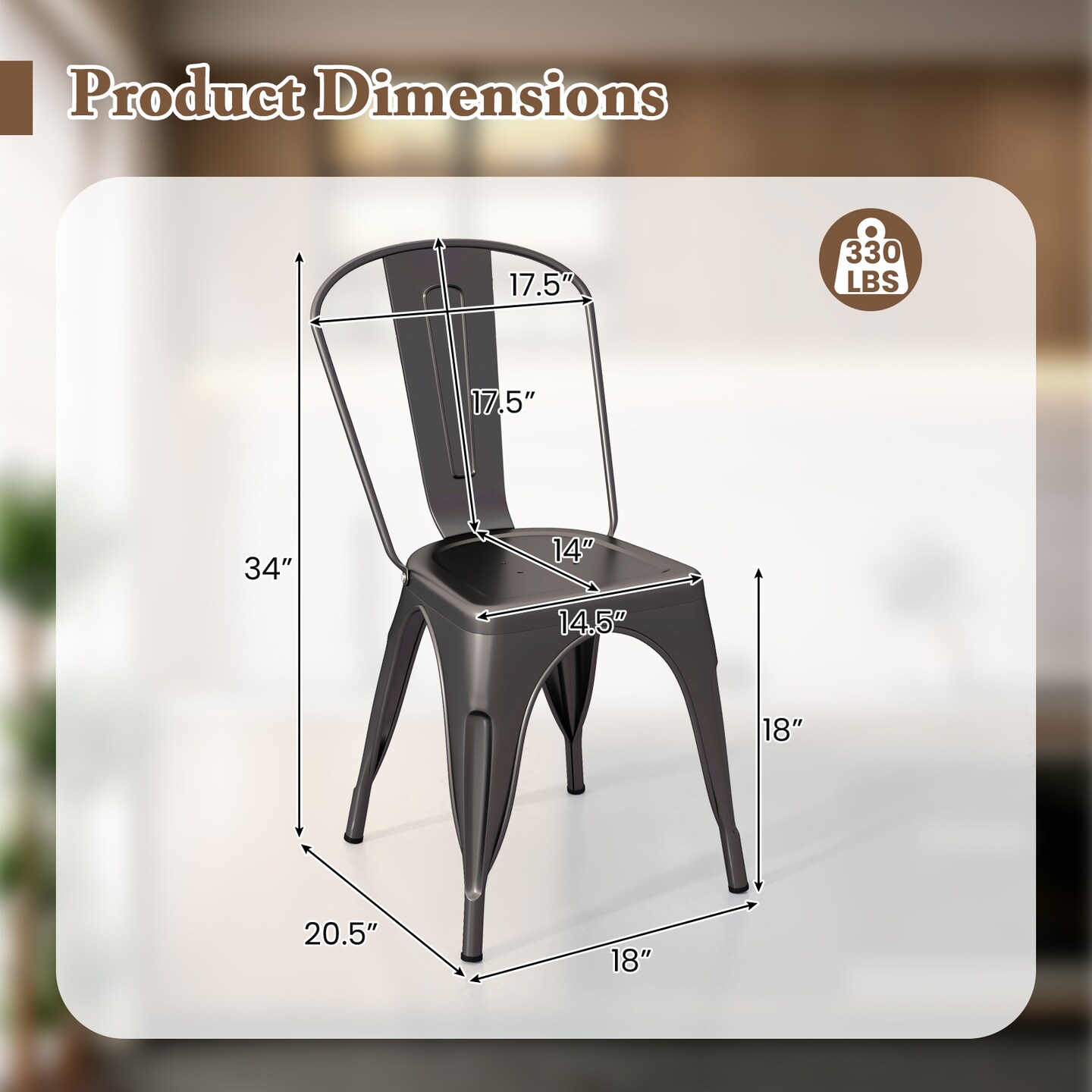 Set of 4 Metal Dining Chairs with Removable Backrest and Anti-slip Pads