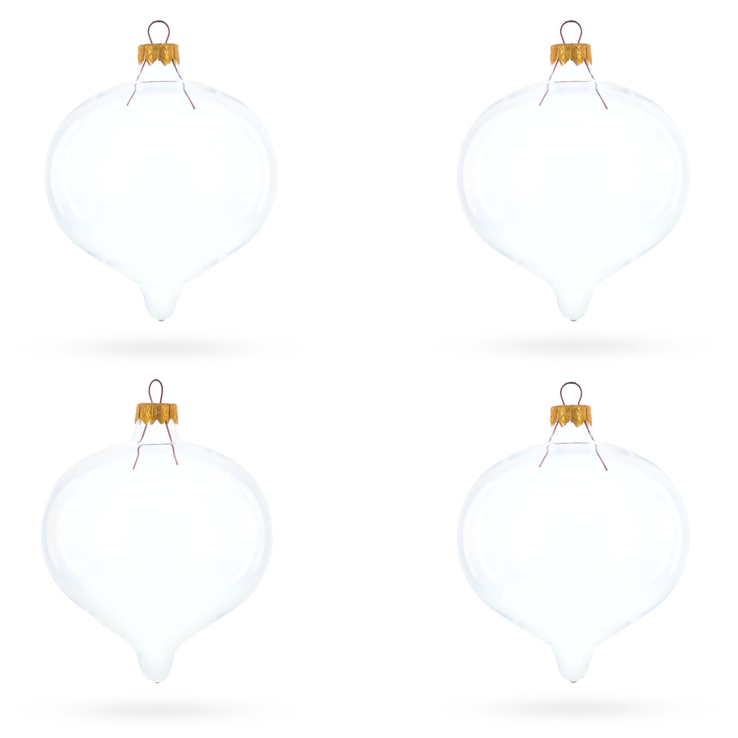 Set of 4 Pointed Onion-Shape Finial Clear Glass Christmas Ornaments